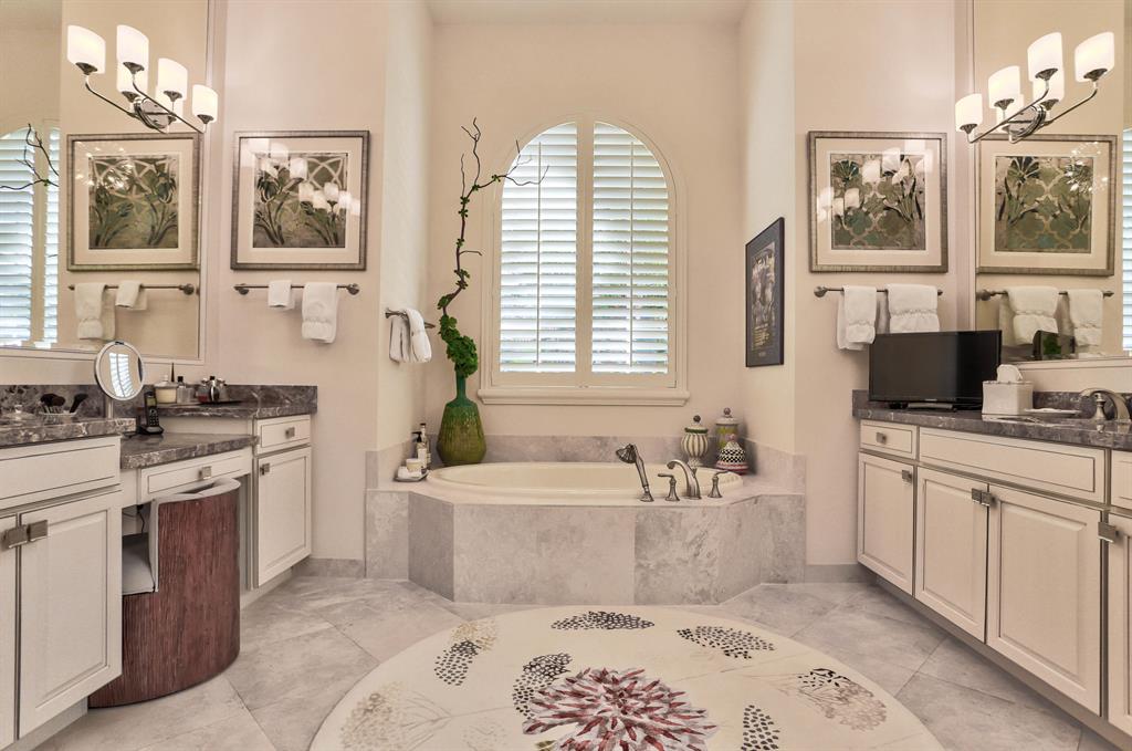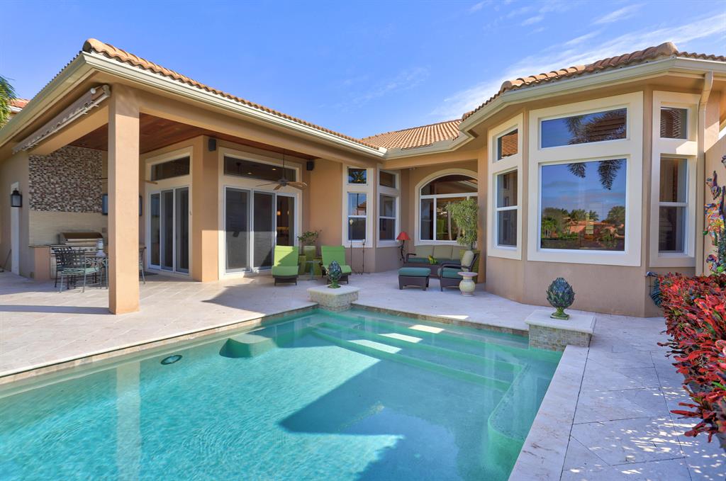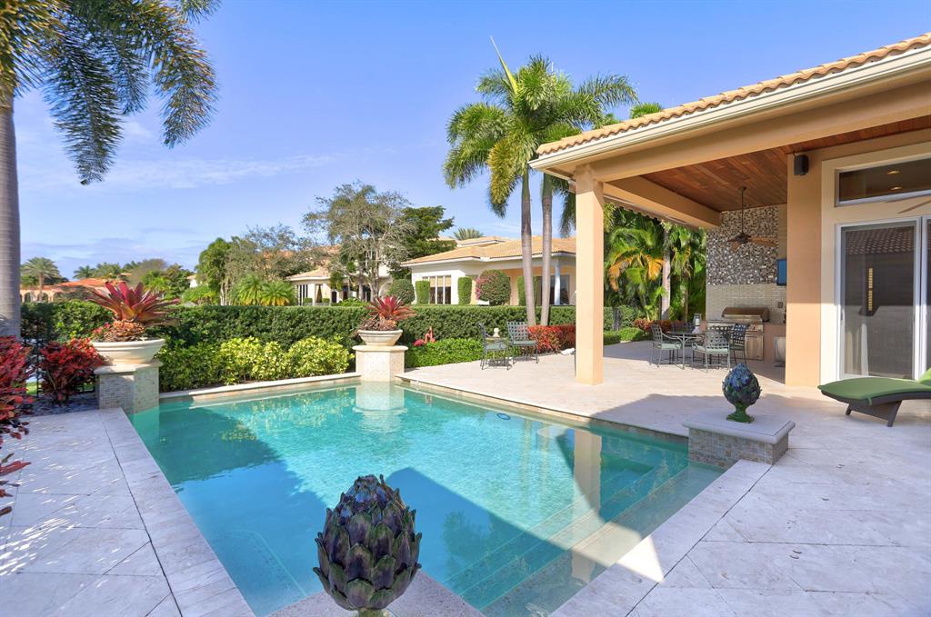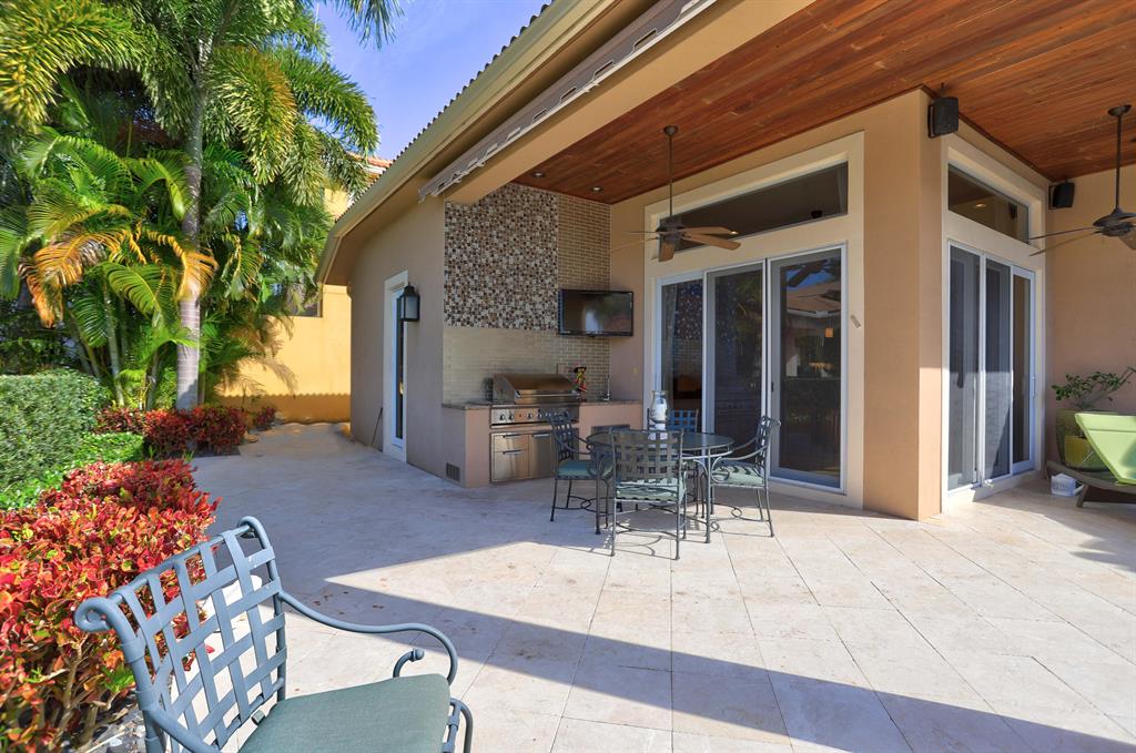 Nestled in the heart of Boca Raton's Millionaire Mile, Azura is a prestigious, boutique, neighborhood containing only 92 homes spaciously set along cobblestone streets. The community entrance sets the stage for the level of luxury you'll find in this exceptional single story home. The long lake view with tranquil fountain spraying high into the air puts one in ''vacation mode'' as soon as you enter the foyer. The home boasts marble floors, a chef's kitchen with natural gas cooking, and electric shades throughout the home including a poolside awning shade. The outdoor space adds to the tranquility of this Toll Brothers masterpiece. The summer kitchen is covered by a pecky cypress ceiling and backed by gorgeous glass tile. If you have pets, they'll love the dog run covered with pet grass.
