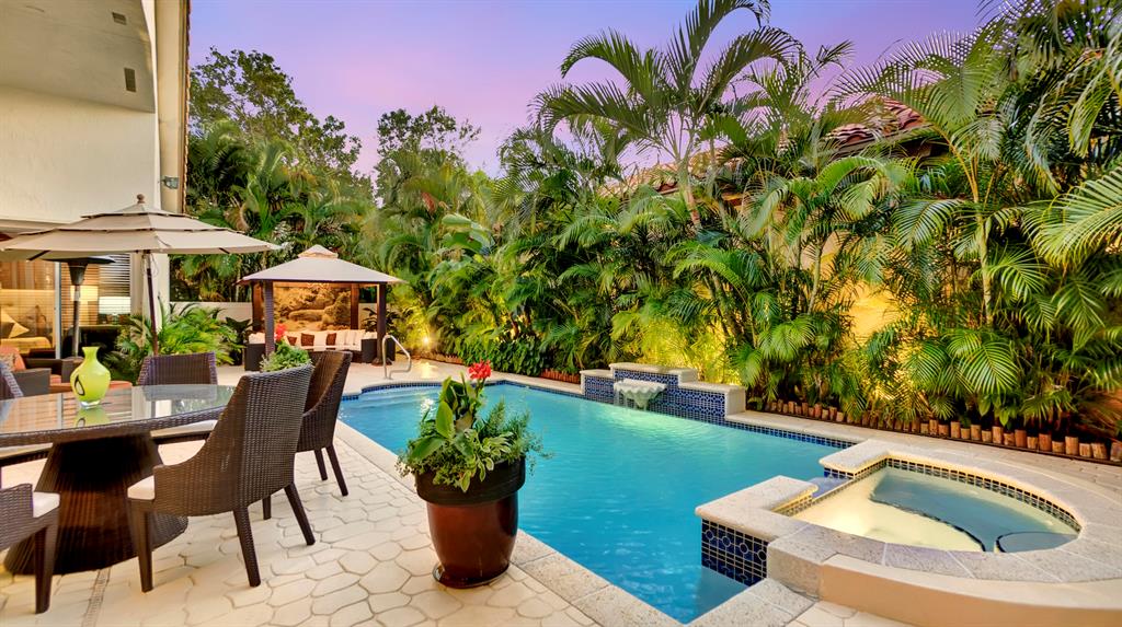 This is the home you have been waiting for! Come see this RARE single story pool home on interior corner lot with side yard located in the highly sought after gated community of Santa Barbara in Boca Raton (A-Rated schools and prime central location!!!). This unique CAPRI model boasts a larger open concept floor plan with over 2500 sq ft of living area featuring 3 bedrooms, 2.5 bathrooms, volume ceilings with elegant architectural accents, custom built-ins, recessed lighting, bay & picture windows providing a bright & airy feel with tons of natural light, Coquina natural coral flooring laid on diagonal in living areas, well appointed bathrooms and totally remodeled kitchen (2011). SEE SUPPLEMENT.