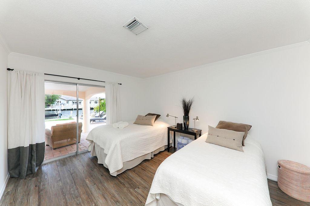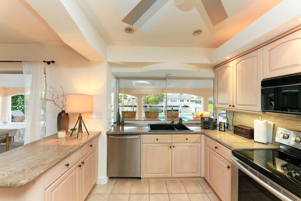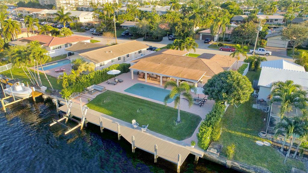 Exceptional water views on intersecting wide canal just off Lake Santa Barbara!. This is a true boater paradise 78ft waterfront, double cap seawall, boatlift (up to 12K lbs.) and new 68ft NewTechWood(r)composite dock decking.Location is key; located towards the end of a cul-de-sac with no through traffic, only 1 fixed bridge (US1) and close to shopping, dining and schools.This home offers plenty of space for entertaining. Kitchen opens towards the covered patio with a granite counter bar with amazing views of the property.Split bedroom floorplan, 2 of the bedrooms has doors towards the patio. Newly renovated modern bathrooms with high end tiles and glass showers. New Trane XR A/C, Stainless Steel appliances. 2 car garage with RaceDeck floors and Gladiator cabinets.
