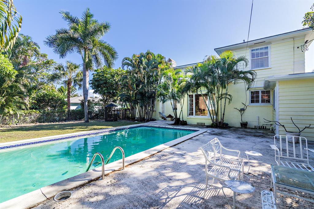 Located on a large 100' x 120' square foot lot, this fabulous Colonial El Cid home features a main house with 4 bedrooms and 3 bathrooms including a detached cabana & swimming pool. Light, bright and airy this home incorporates hardwood floors, large bay windows overlooking the pool/ spacious back yard, high ceilings and a one of a kind art-deco concrete staircase. The current layout/ configuration is 2,980 total square feet with 2,390' under air. Confirmed with the City of West Palm Beach's Historic Board, this historically significant home can be considerably added on to and if desired, the pool can be moved. Located yards away from Flagler Drive and its magical bike trail, near area beaches, fabulous dining and streets away from PB Day Academy. *In the Palm Beach Public Elementary...