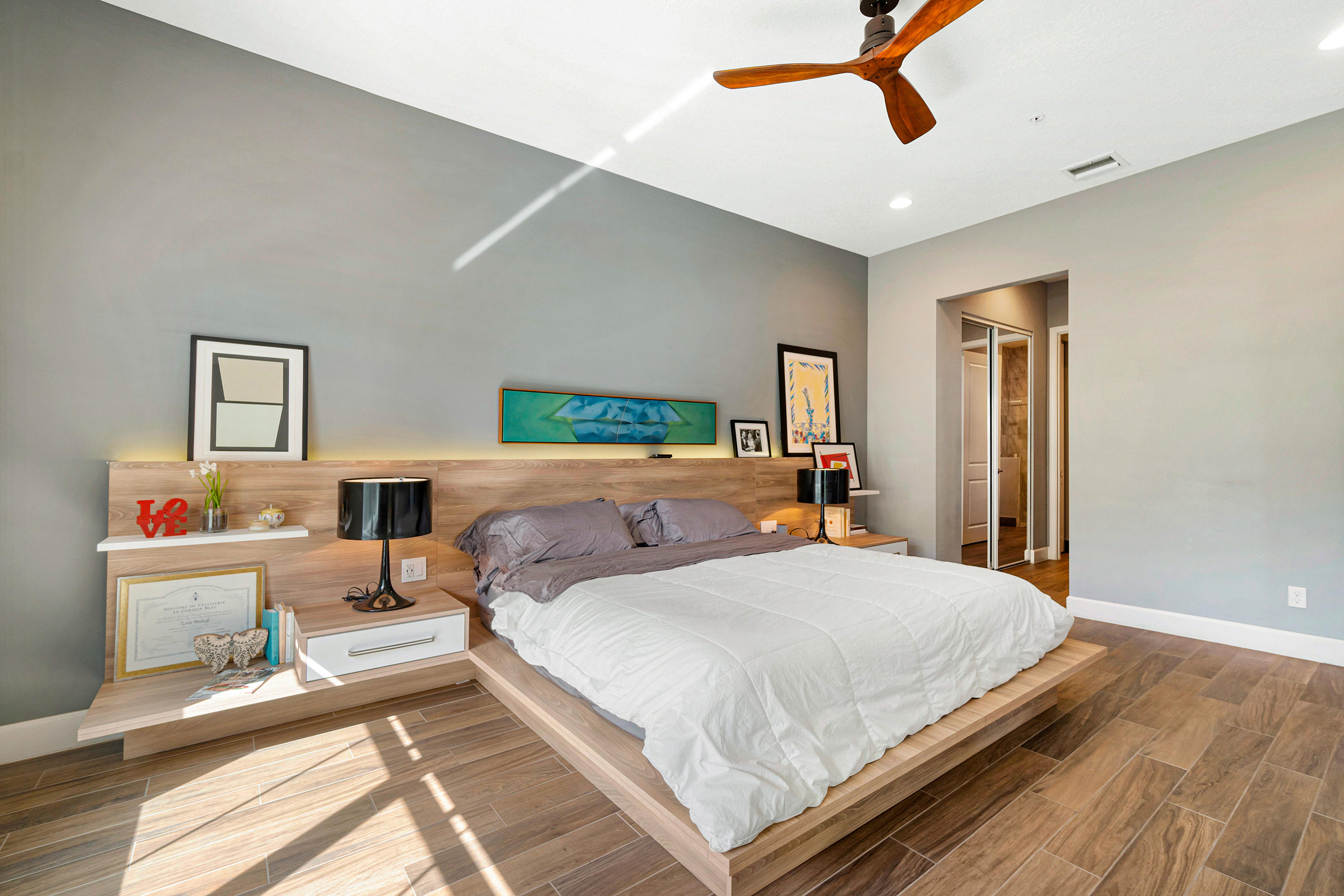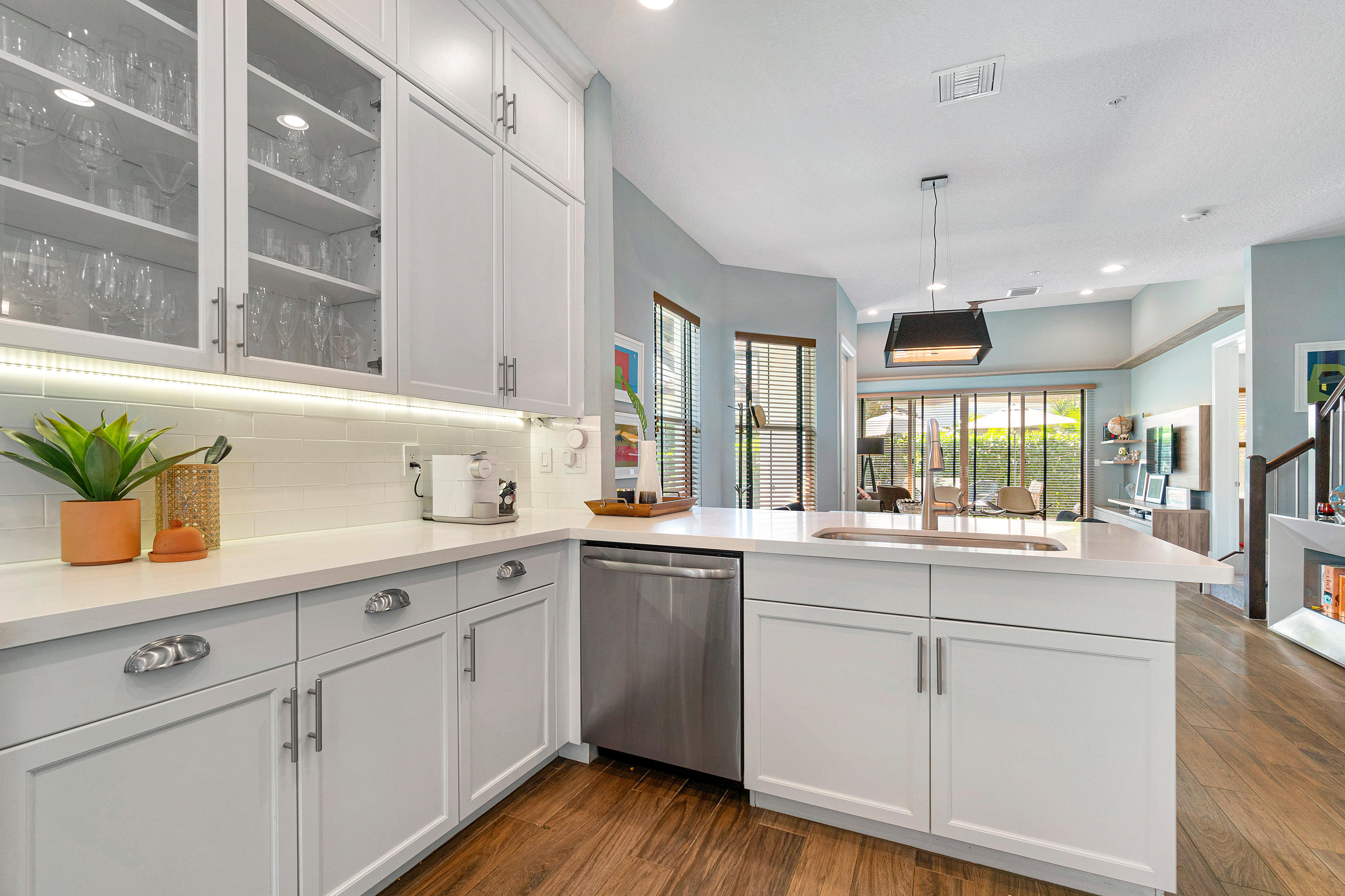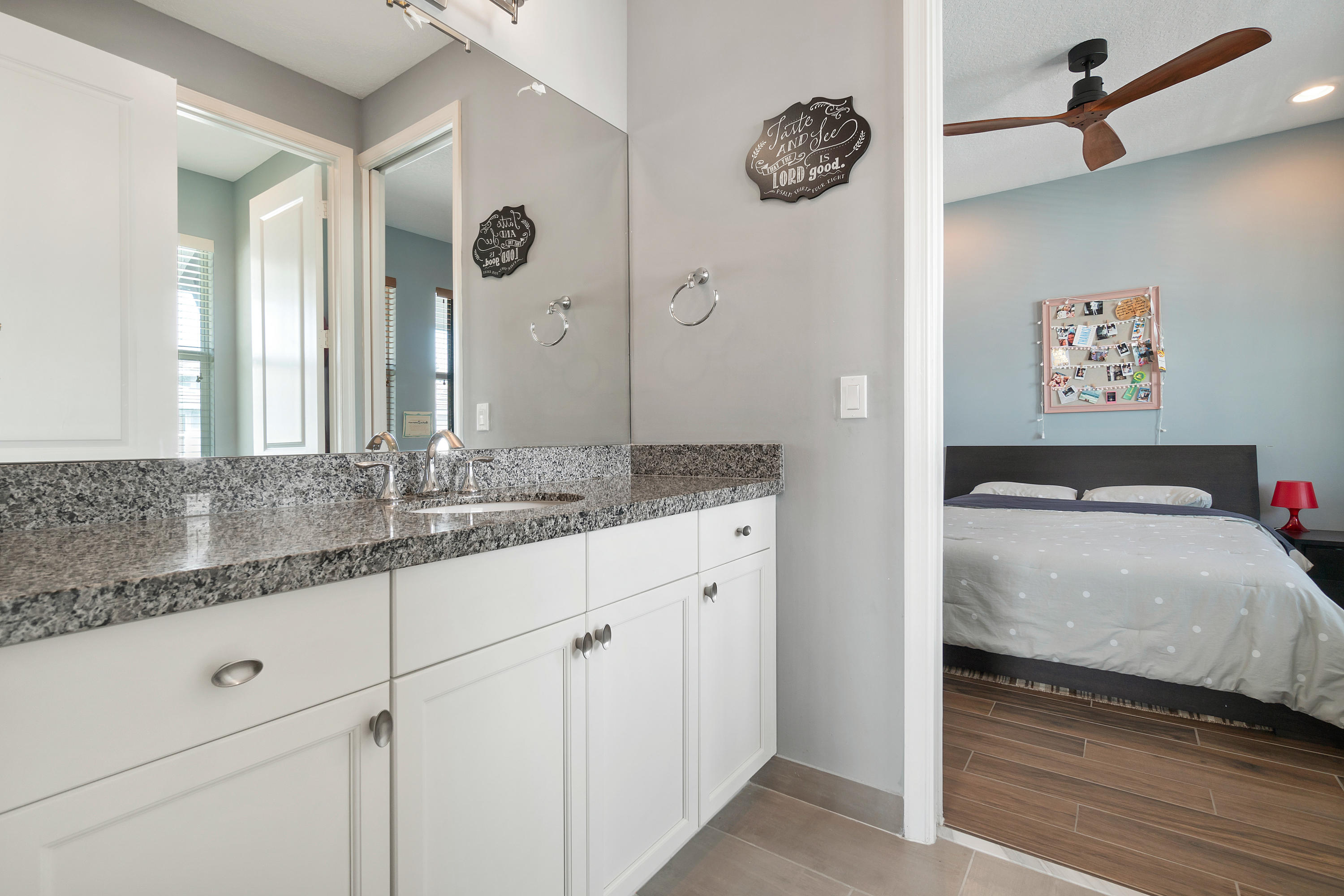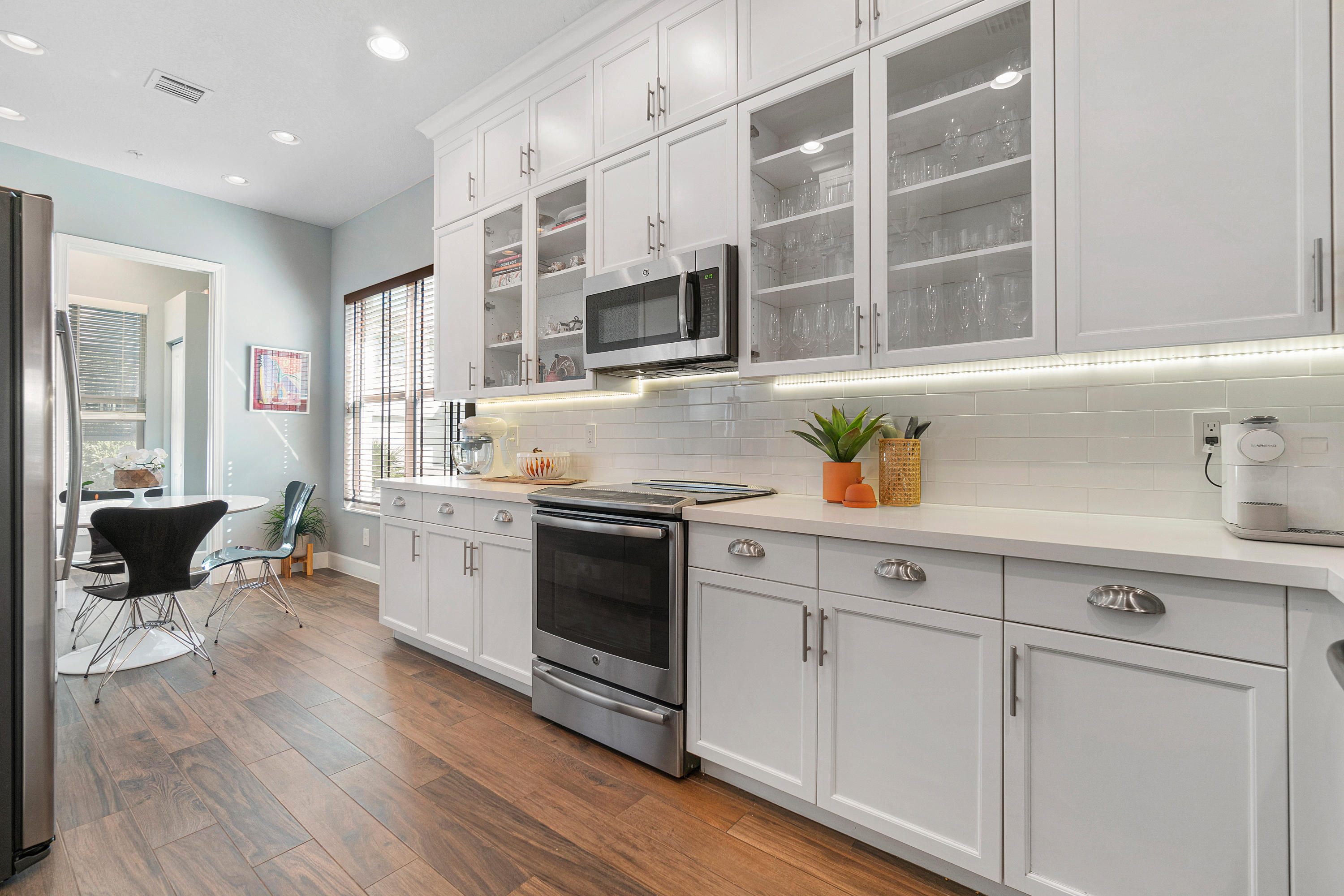 Beautiful designer level wave model constructed in 2016 and loaded with high-end builder upgrades and con. This Rare 4 bedroom with a first floor master is situated as a corner unit with endless greenery views. It is situated with a beautiful covered patio surrounded lush landscaping and tropical trees which provides great privacy amongst neighbors. This unit was loaded with tasteful upgrades such as upgraded flooring, quarts countertops in kitchen and bathrooms, and wood tile upstairs.