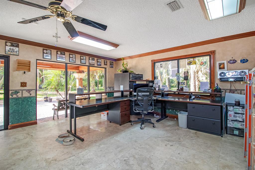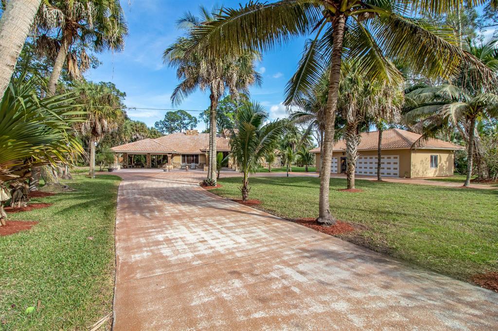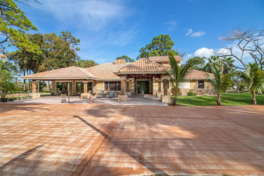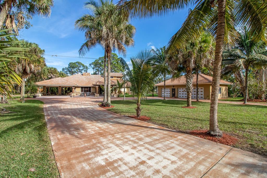 Incredible opportunity to own your own private oasis with no HOA located close to everything West Palm Beach has to offer. This warm comfortable pool home has a rustic feel, is great for entertaining, suitable for equestrians, and sits on a peaceful 2.5 acres complete with a pond and high-end exotic landscaping. Desirable features include soaring vaulted ceilings, tile & bamboo flooring, a loft, fully remodeled bathrooms withnew showers, a storefront office space with a separate entrance perfect for business owners, a detached 1,000 sq ft mother-in-law suite, 1,000 sq ft 3 car garage, and an expansive screened-in patio with a covered sitting area, paver flooring, swimming pool, and spa.