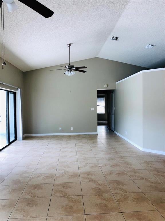 Spacious 4 bed 3 bath Single Family Pool Home, Corner lot, volume ceilings in the living and dining room, den & library. Tile throughout the common area with laminate/carpet in the bedrooms. Home needs some updating and TLC. Nicely landscaped backyard with a large patio area surrounding the pool.
