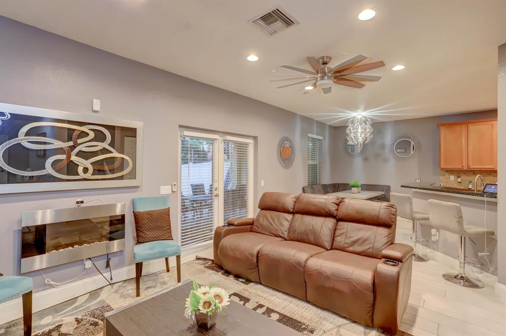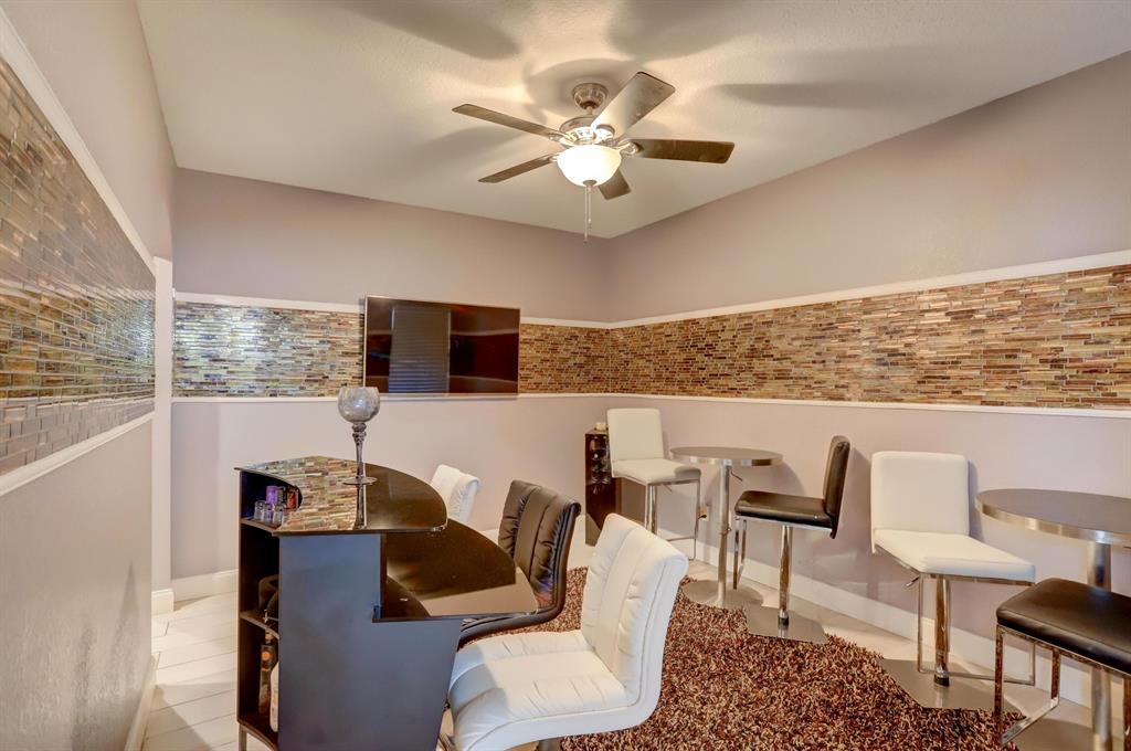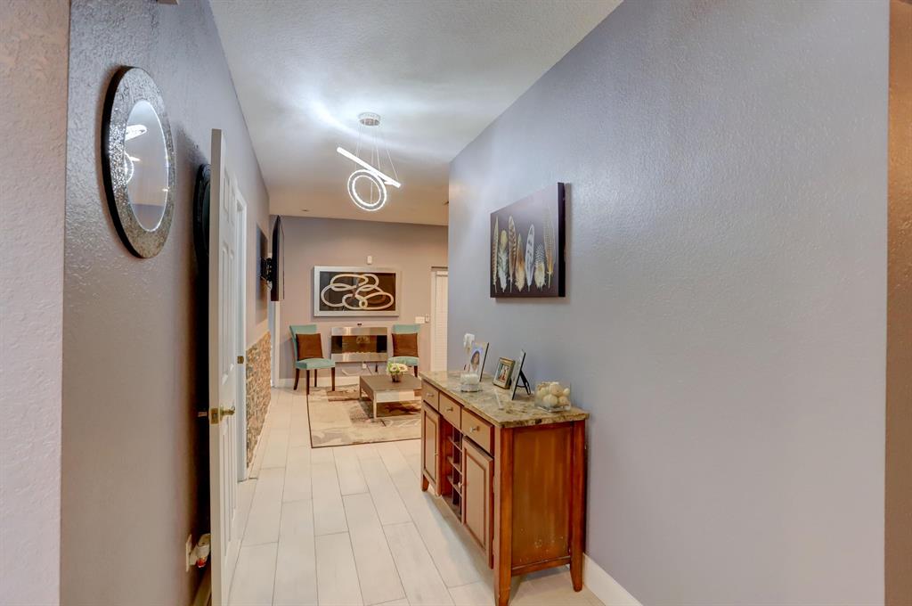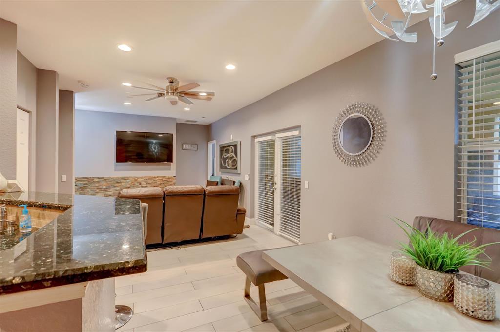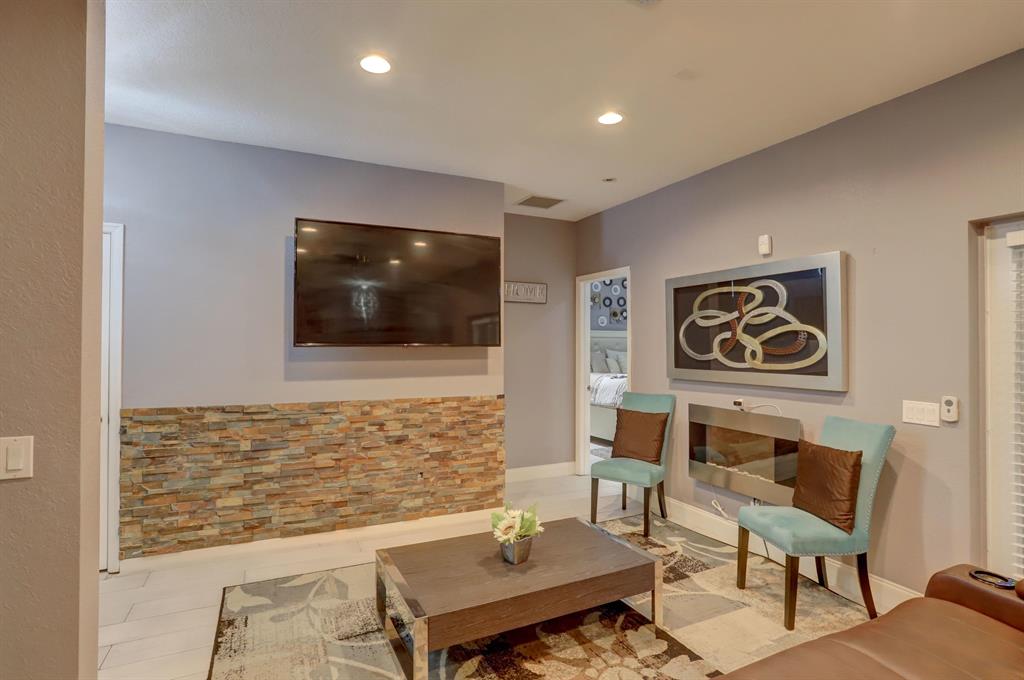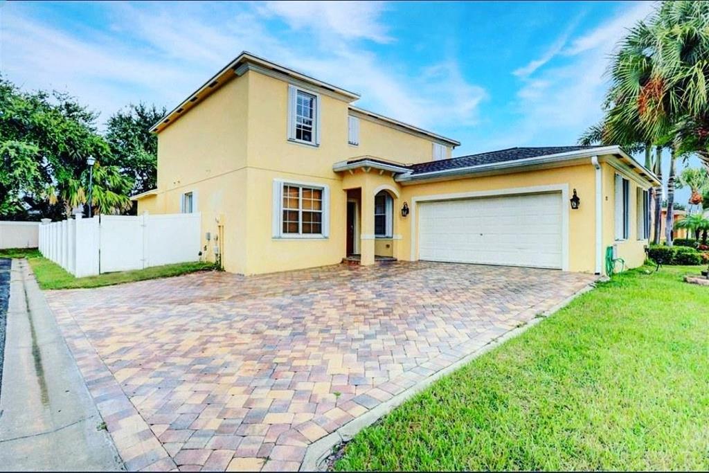 Located in charming Sunterra gated community, you'll find more to love in this spectacular turnkey, open-concept contemporary home. The corner lot home, you'll experience a variety of updates and upgrades including brand new AC, porcelain tile flooring throughout first floor, upgraded light fixtures and tilework, and new fencing. Remodeled owner's suite includes walk-in closet and en suite bath with dual sink vanity and separate tub and shower. Expansive kitchen with granite counters, stainless steel appliances including new microwave, custom cabinetry, and seated bar. Loft area provides additional room for living and entertaining space. Large tumbled stone driveway and double garage. Accordion shutters offer added security and convenience. Community amenities incl clubhouse and pool.