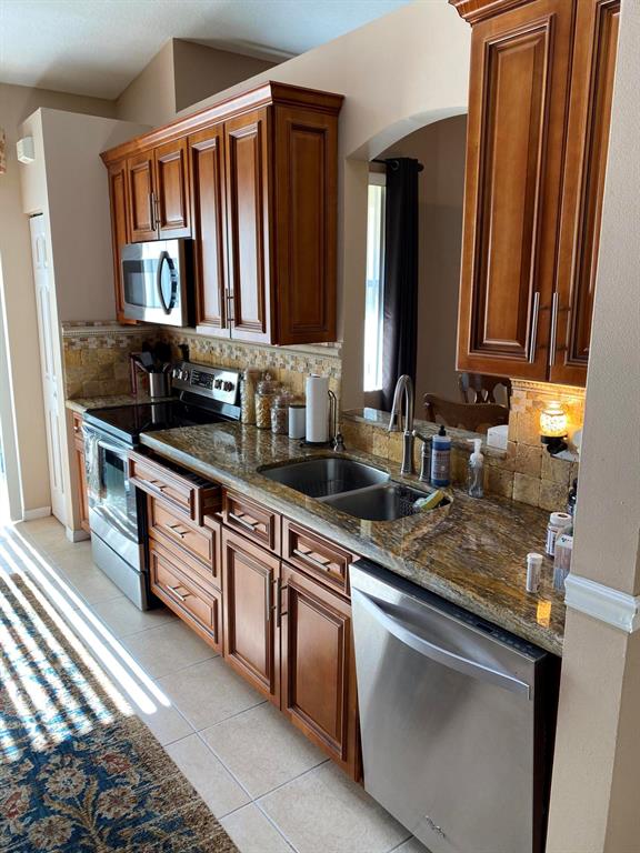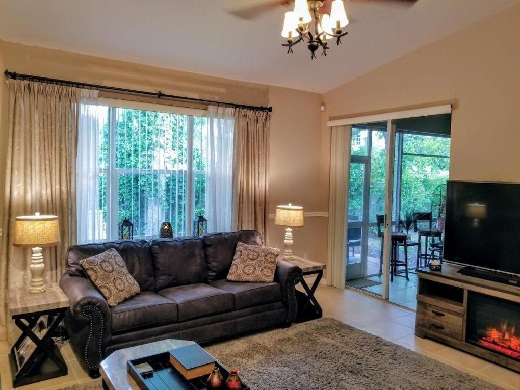 This beautiful 3/2 home is priced to sell and below market value for a quick sale. Definitely won't last long at this price! New AC in 2019/19, upgraded with new kitchen cabinets, granite countertops, and new stainless steel appliances, new garage opener, 2 car garage is very functional with loads of cabinets and a workbench & a covered screened patio. Beautiful community pool, clubhouse, lawn care, roof, ext maintenance, alarm system, irrigation system, internet, cable, 24 hour manned security gate, patrol + more included w/HOA. All appliances stay.