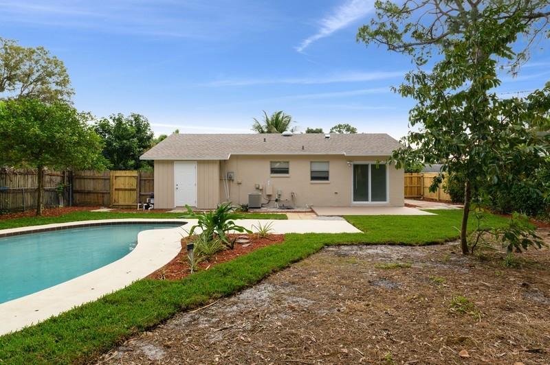 DON'T MISS THIS ONE, 3/2 WITH A POOL. RECENTLY UPDATED KITCHEN WITH SS APPLIANCES, TILE THRU-OUT, BOTH BATHROOMS HAVE NEW VANITIES AND MIRRORS, ALL CLOSETS HAVE NEW SHELVING AND MIRROR DOORS. FRESHLY PAINTED INTERIOR AND EXTERIOR . SLIDER DOORS REPLACED WITH BEAUTIFUL BLIND-ENCASED GLASS LEADING TO OPEN PATIO AND POOL AREA. VERY LARGE BACKYARD FILLED WITH FRUIT TREES LIKE MANGO, PAPAYA, GUANABANA, AVOCADO AND FULLY FENCED. CIRCULAR DRIVE PROVIDES PLENTY OF SPACE FOR PARKING. 2019 ROOF.