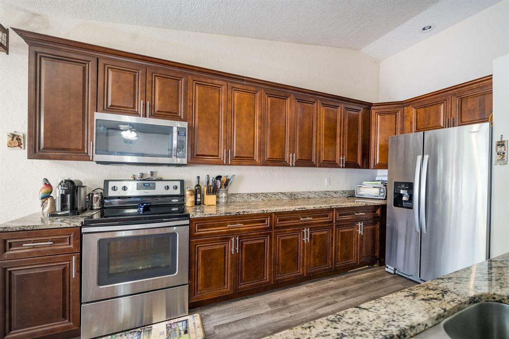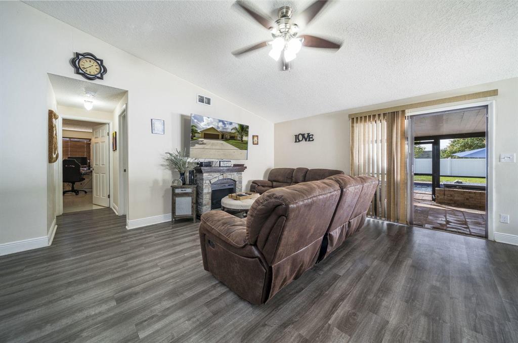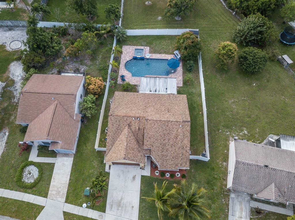 A MUST SEE!! This house has it ALL.You walk in the front door to a huge great room with a custom stone wall at the kitchen,breakfast bar & newer water resistant vinyl flooring.View of the spacious screened in patio and beautiful vinyl fence backyard with an AMAZING 20x38 BRAND NEW HEATED POOL with sunbar,SPA with jets, Salt & Chlorine water,Color lights system,enjoy your fruit trees Papaya,Mango,Avocado,Orange&Tanger. 3 bedrooms with walking closets, 2 updated baths, 2Car garage, 1 story single family home with an open-air feeling, Cathedral ceilings,recess lighting,24'' porcelain tile 2nd & 3rd bedroom.Alarm system,RING doorbell, Nest thermostat and security cameras & LG washer/dryer included.Accordion shutters, New water heater, newer roof,newer A/C & appliances & generator connection!!