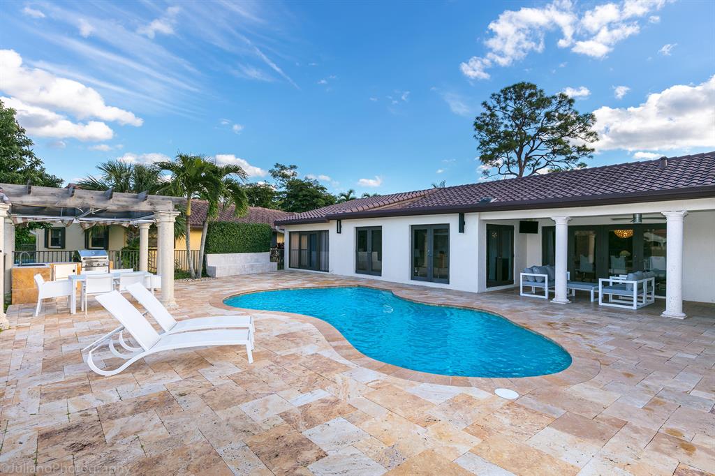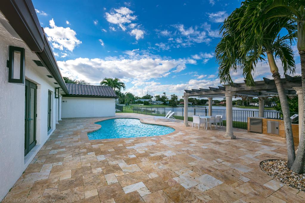 Recent updates have been made to the front and back of the house. Updated pictures will be available next week. Beautifully renovated, contemporary, 5/4.5 plus office with excellent features and open floor plan. oversized driveway, pool and breathtaking, expansive Lakeview!! Outdoor barbecue kitchen. One of the best lake lots in the community. Hurricane windows*. Speakers throughout the house. Light and bright. 24 hour guard-gated community w/ tennis, walking trails & playground. TOP rated ''A'' Schools. Central City of Boca Raton location, close to everything! Easy access to I-95, Tpke, adjacent to shops & dining.Will not be available until June 10th to show.
