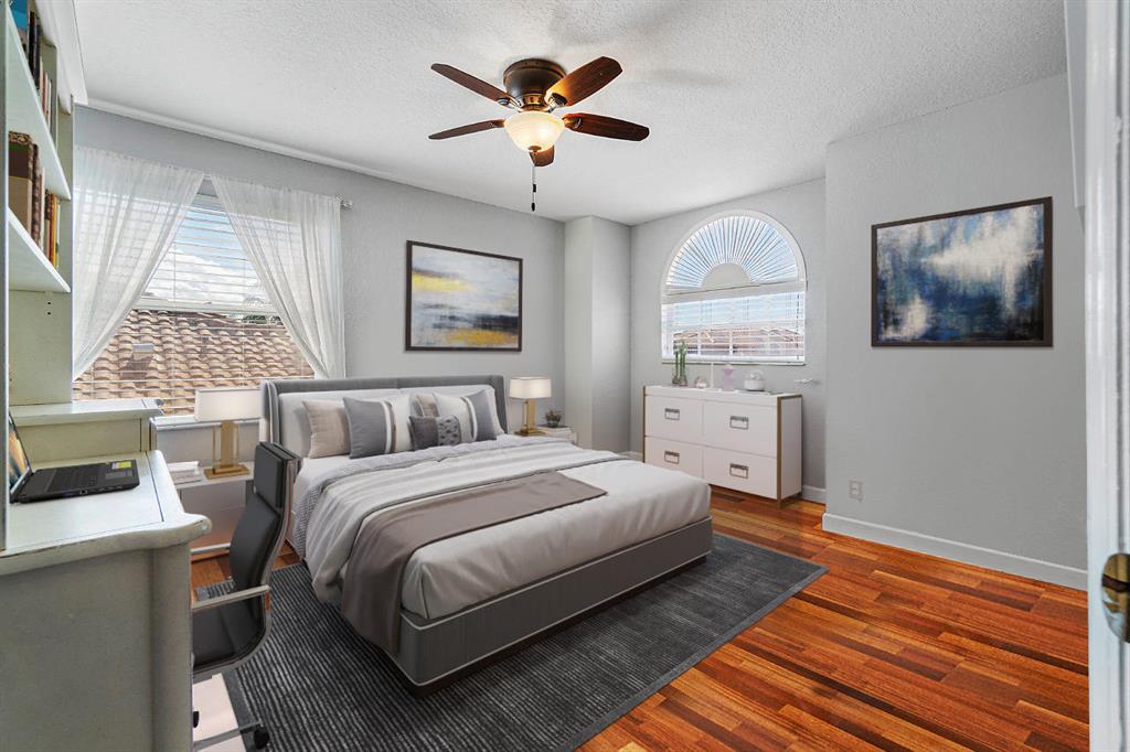 Impeccable two-story pool home located in Mission Bay's exclusive estate section of Cordova Estates! This impressive estate home features 4 bedrooms and 3 full bathrooms sprawling over 2,650 SqFt under air. Elegant marble floors and floor to ceiling windows highlight the dramatic two-story entrance, with dazzling pool views and sweeping high ceilings creating a light and bright open floor plan perfect for entertaining! Privacy is a priority, with no rear neighbor and a split bedroom floor-plan highlighted by the downstairs master suite, and a very accommodating additional downstairs bedroom and bathroom. Upstairs houses two more guest bedrooms and another full bathroom, with updated wood floors throughout. See Supplement Remarks.