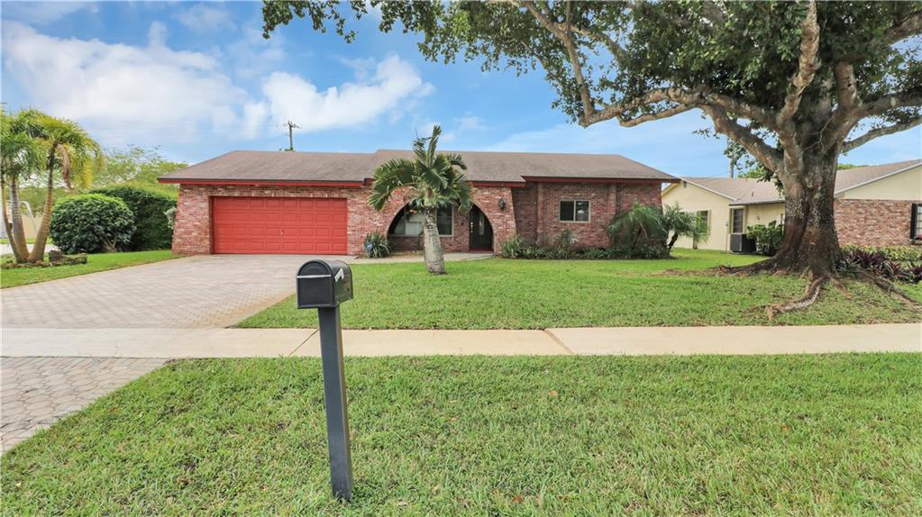 Classic one story ranch w brick accents on oversized lot with full 2 car garage. No HOA dues here. This home has all the features you're looking for. Impact windows, newer 4 year old roof, newer 2 year old AC. Formal dining and living areas, spacious family room, updated granite kitchen and bathrooms. Good sized master suite and bath, big bedrooms 2 & 3. Bonus room off family room perfect for home office/playroom. Screened, covered and tiled rear patio overlooks the large back yard. Access to nearby parks, close to top rated schools, shopping at Sawgrass and transportation.