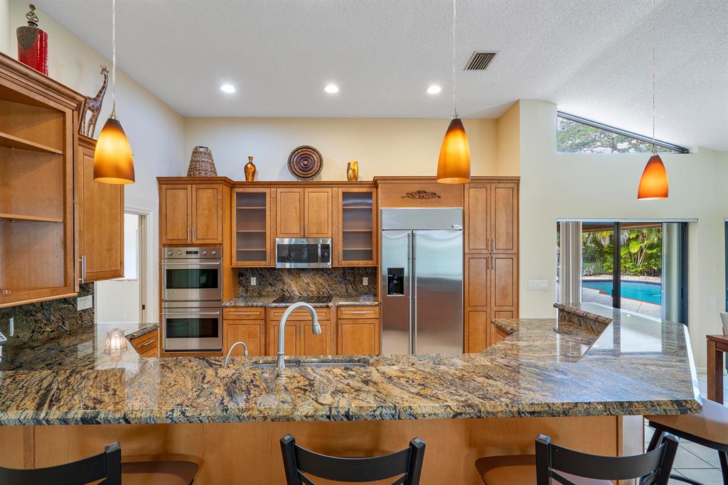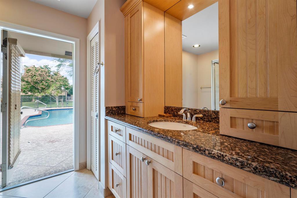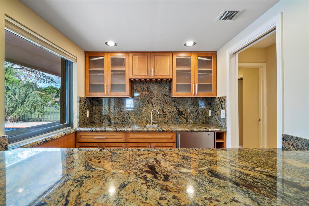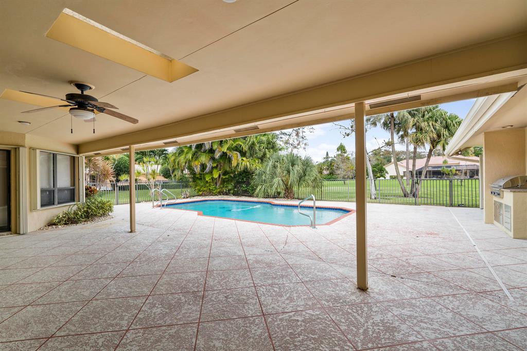 Updated, Family home on interior lot with hurricane protection throughout, 2008 new roof, 2017 impact front doors and impact windows, accordian shutters on all other openings. All updated bathrooms and kitchen with granite countertops and stainless steel appliances. Large wet bar, pool table area, family room with wood burning fireplace plus Portable generator with generator hook up. 3 ac units, split floor plan, & summer kitchen. Fenced, open and none heated pool with view of oversized property.....