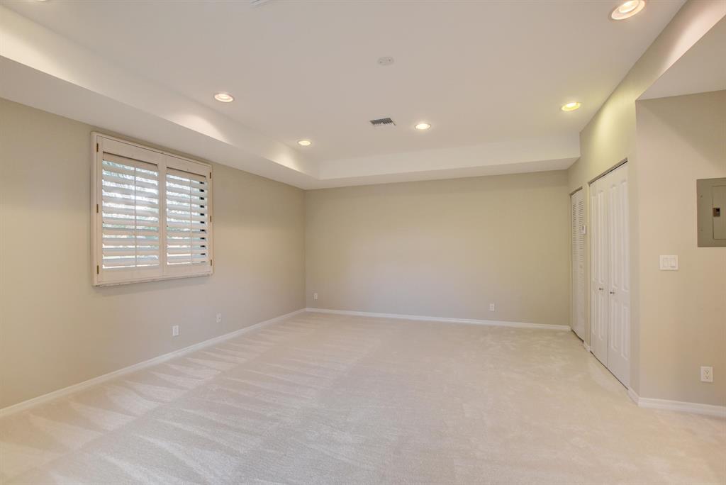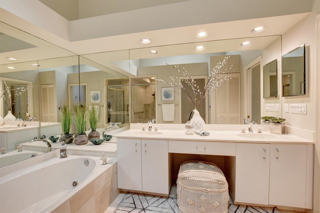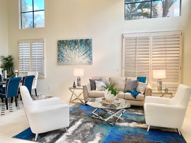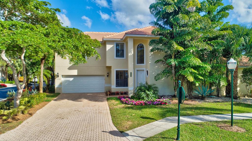 Light, bright, and airy 4 bedroom, 2.5 bath single family waterfront home with a pool and fabulous curb appeal in highly desirable Hampton Court at the Polo Club. This home is situated on a beautiful corner lot and has a great layout with lots of added bells and whistles. Brand new carpet in bedrooms, updated kitchen, newer roof (2008), plantation shutters throughout, newly diamond brited pool, new landscaping, neutral colors, and the list goes on. Fabulous open layout with a spacious master bedroom on the first floor overlooking the pool and lake and three additional bedrooms upstairs, including one extra large room that would make a fabulous media room, exercise room, or library. House has been professionally decorated by Jill Gold Home Stager.