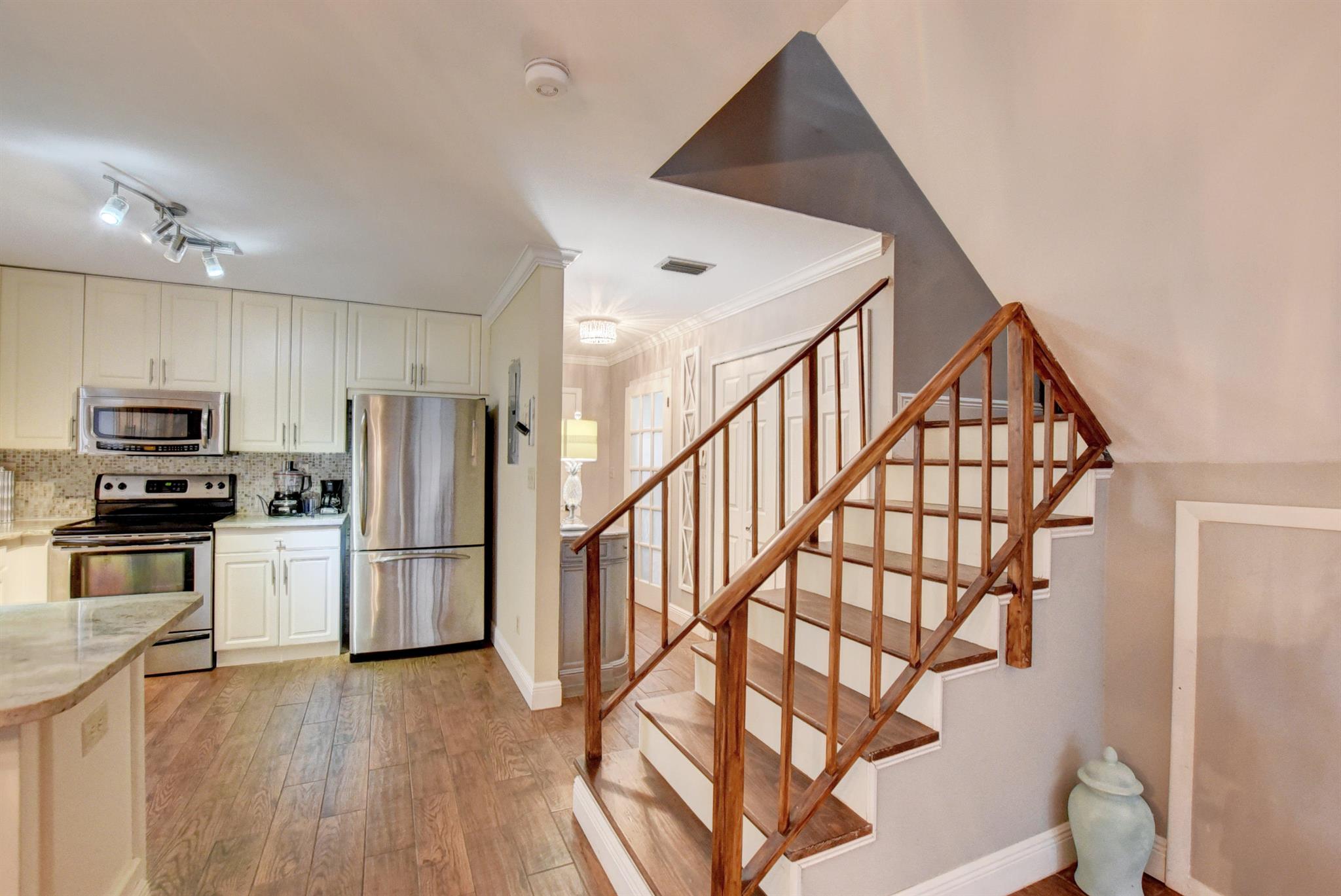 VACANT. TURNKEY ONE OF A KIND TOWN HOME ALL AGE COMMUNITY LOW HOA 3 BEDROOMS 2.5 BATHS WITH 1 CAR GARAGEGROUND FLOOR ALL WITH PORCELAIN TILE ALL REMODELED KITCHEN WITH GRANITE COUNTERTOPS ALL WITH STAINLESS STEEL APPLIANCES CROWN MOLDINGS STUNNING ALL NEW LIGHT FIXTURES AND CHANDELIERS ENCLOSED PATIO WITH RARE PRIVATE GARDEN UPSTAIRS ALL WITH LAMINATE FLOORS BATHROOMS ALL UPDATED NEW TOILETS AC ONE YEAR OLD WATER TANK 2013 NEW GARAGE DOOR COMES FULLY FURNISHED AS YOU SEE IN PICTURES NEXT TO CLUBHOUSE SWIMMING POOL HOA INCLUDES BASIC CABLE LAWN AND GROUNDS CARE TRASH AND EXTERIOR MAINTENANCE PETS ALLOWED UP TO 35 LBS THIS IS A MUST SEE !
