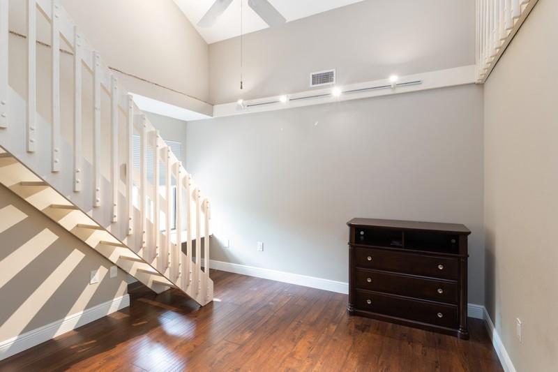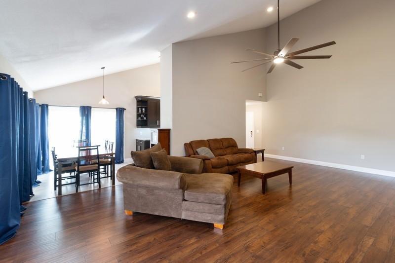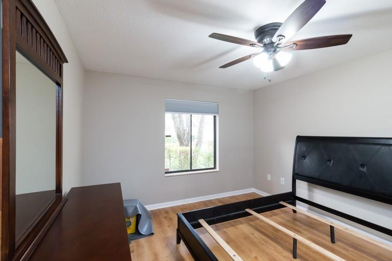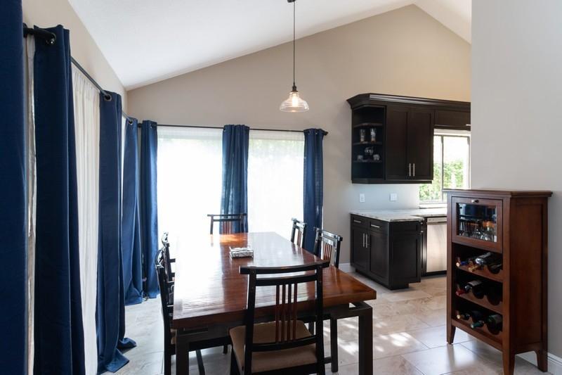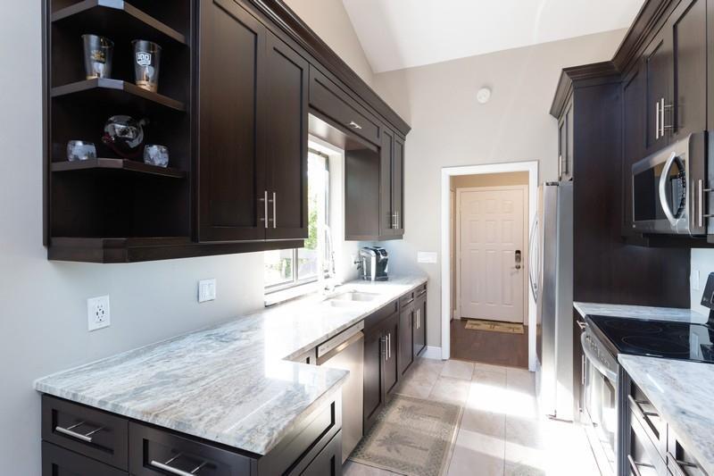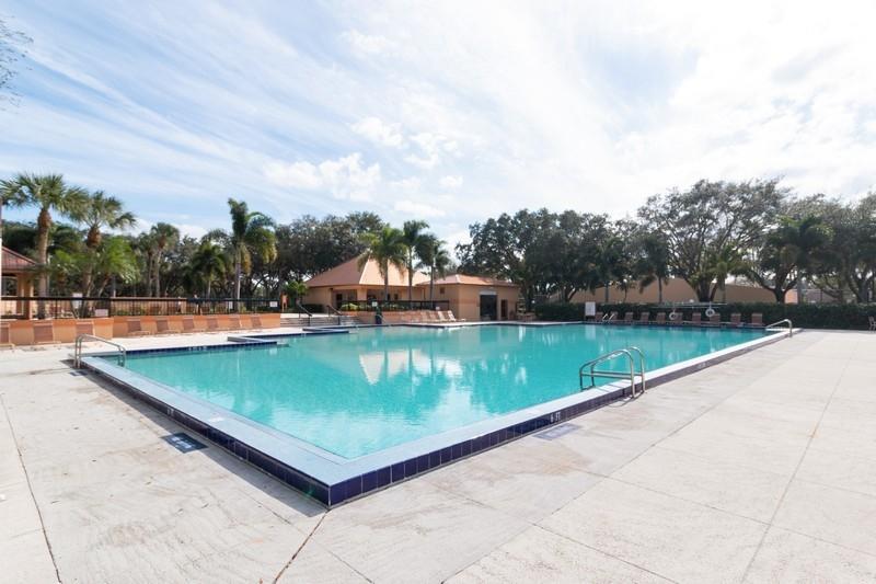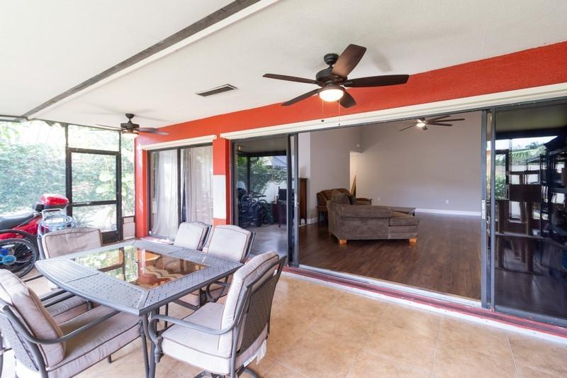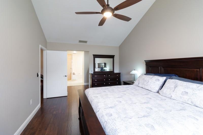 Renovated & upgraded home with 3 bedrooms & 2 baths in highly desirable Saratoga Pointe. Kitchen features high end 42 inch cabinetry with crown molding, slow close drawers/doors, granite counters, under cabinet lighting, WiFi S/S appliances, full pantry and snack bar. Soaring ceilings in living areas with wood laminate flooring, designer ceiling fan & wall sconces. Master bedroom has cathedral ceilings, an en-suite bathroom with dual sinks, soaking tub & separate shower. Open floor plan with glass sliders leading to the large screened in patio & private back yard, an entertainers delight. Pride of ownership shows in this move-in-ready home. The Saratoga Pointe community includes multiple community pools, a kiddy splash pool, tot lot, lighted tennis courts, racquetball courts,