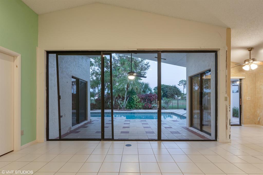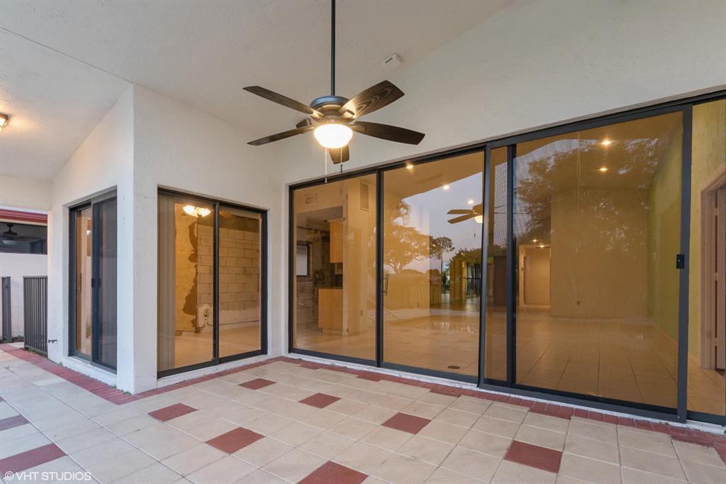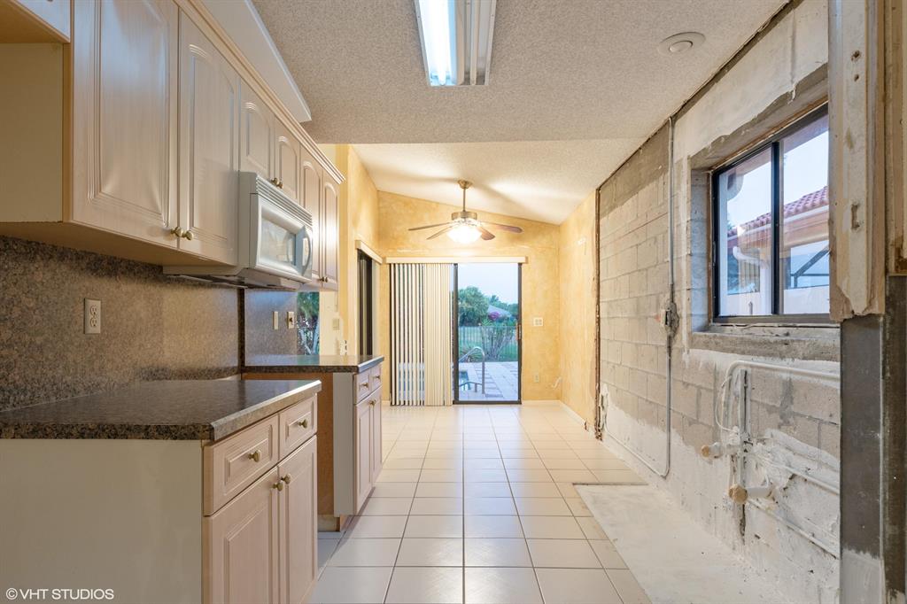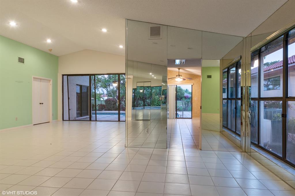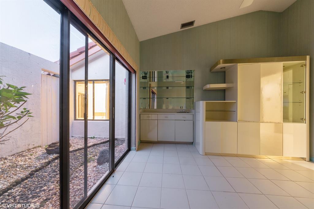 Come see this 2 bedroom plus a den / 2 bathroom single family home with a pool and serene lake and golf views in the prestigious Boca Woods Country Club Community. This home features vaulted ceilings and a split floor plan. There is tile throughout the living areas and wood laminate in the bedrooms. The master suite features dual sinks and a separate tub and shower. This home and this community are perfect for entertaining, the den even has a wet bar! Enjoy South Florida living on your back patio or swimming in your pool. Boca Woods is a mandatory membership community of $65k upfront. $30k is refundable when you sell. This wonderful gated community in west Boca Raton features two championship golf courses, a resort style pool, clubhouse, fitness, tennis, restaurants and a lounge.
