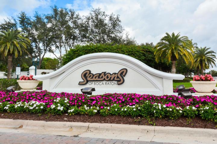 This fabulous 4 bedroom, 3 1/2 bath home is centrally located in beautiful Seasons of Boca Raton. It is on a private cul-de-sac street with a terrific large landscaped lot that is almost 1/2 acre of land. Beautiful oak wood floors throughout. Large kitchen with center island, wood cabinets, Corian & Granite counter tops. 3-way split bedroom plan. Open living room and family room. Large master bedroom suite. The kitchen, family room and master bedroom all have amazing views of the pool and beautifully landscaped property. Extremely large front entrance with extra large Travertine marble driveway.