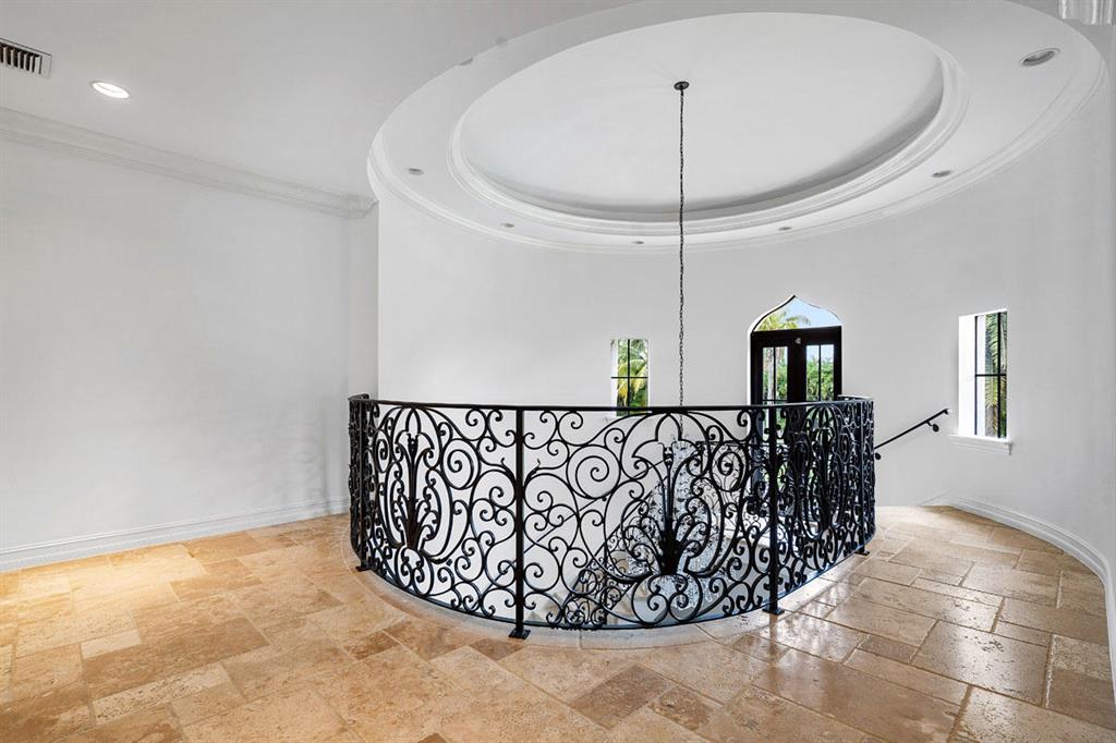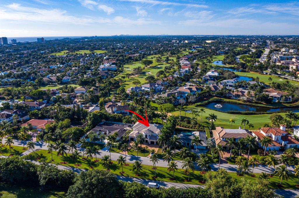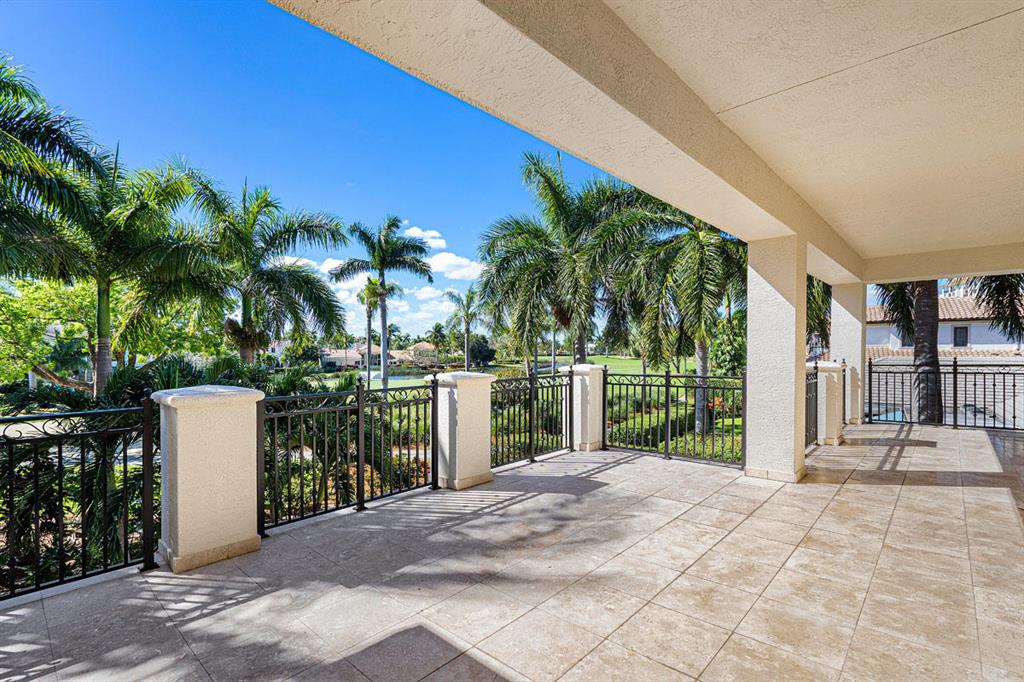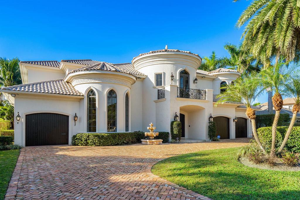 202 East Camino Real is a golf course home located on Royal Palm Yacht & Country Club's Jack Nicklaus Signature Golf Course. Freshly painted inside and out, professionally cleaned and pressure washed, the home has south exposure in the back and offers 4 bedrooms plus a library, 5 full bathrooms and 1 half bath, 5,232 square feet under air, and a 3 car garage. The two-story foyer entrance has an elegant rotunda marble staircase that leads up to the master suite, three additional bedrooms, and an upstairs laundry room with a refrigerator, sink, and storage cabinets. The gourmet kitchen has top-of-the-line appliances and eat-in kitchen opening to a family room and breakfast area with bow windows looking out to an enclosed patio and pool. The formal living room offers an entertaining bar