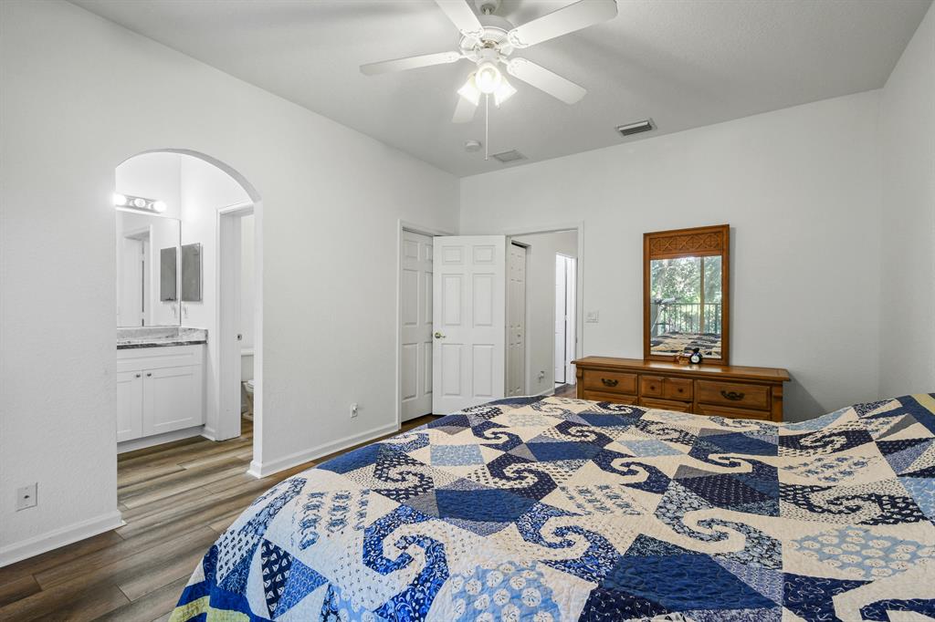 Fabulous 3 bedroom townhome ready to move into. Many updates including new cabinets, all matching stainless steel appliances and granite in the kitchen. On the stairs and throughout the upstairs is a new wood vinyl that looks just like wood but is so much easier to care for. Both bathrooms have new vanities and granite. Newer A/C and water heater. Laundry room has washer and dryer, deep freezer and utility sink. Private covered first floor patio and private, covered balcony off the master bedroom. This unit is the largest in the community, it is an end unit and backs to the golf course. This is a must see!!