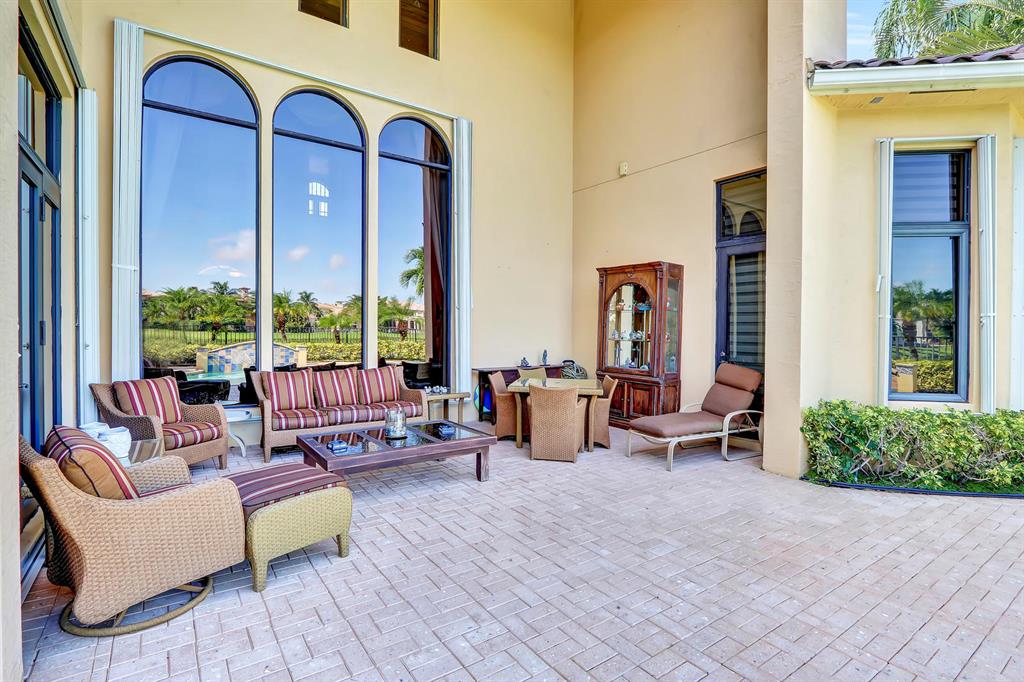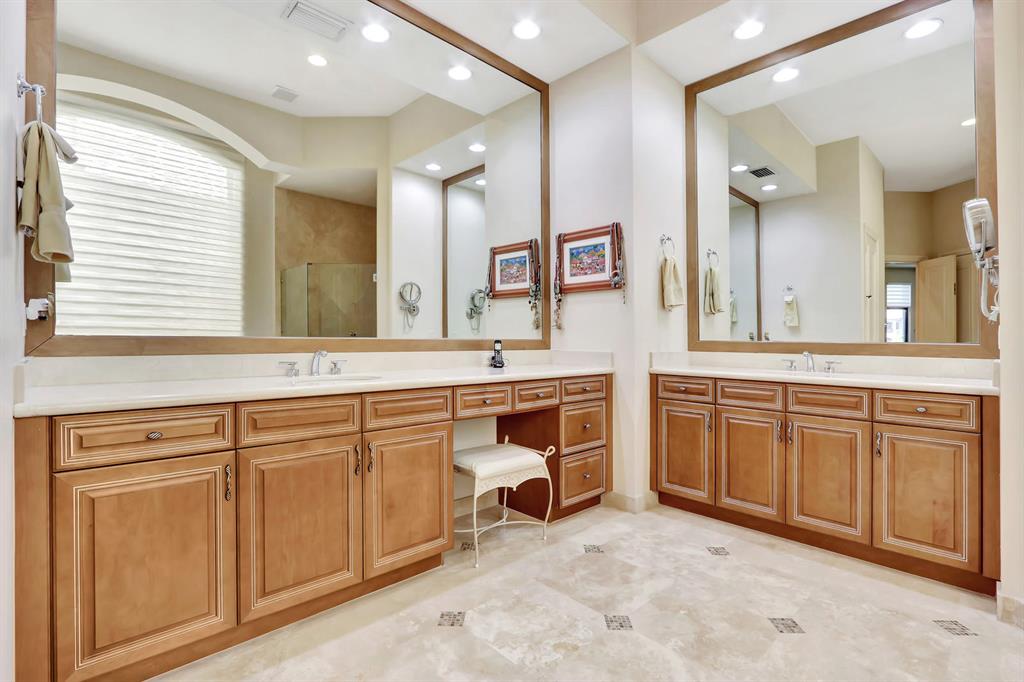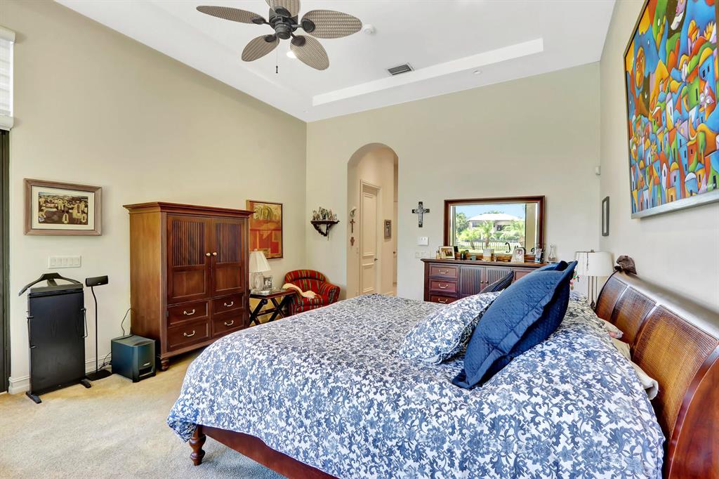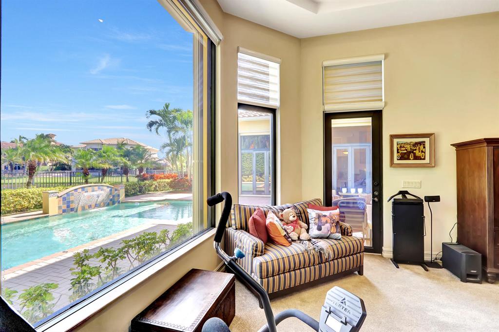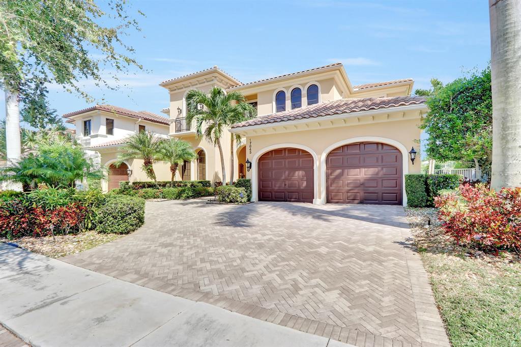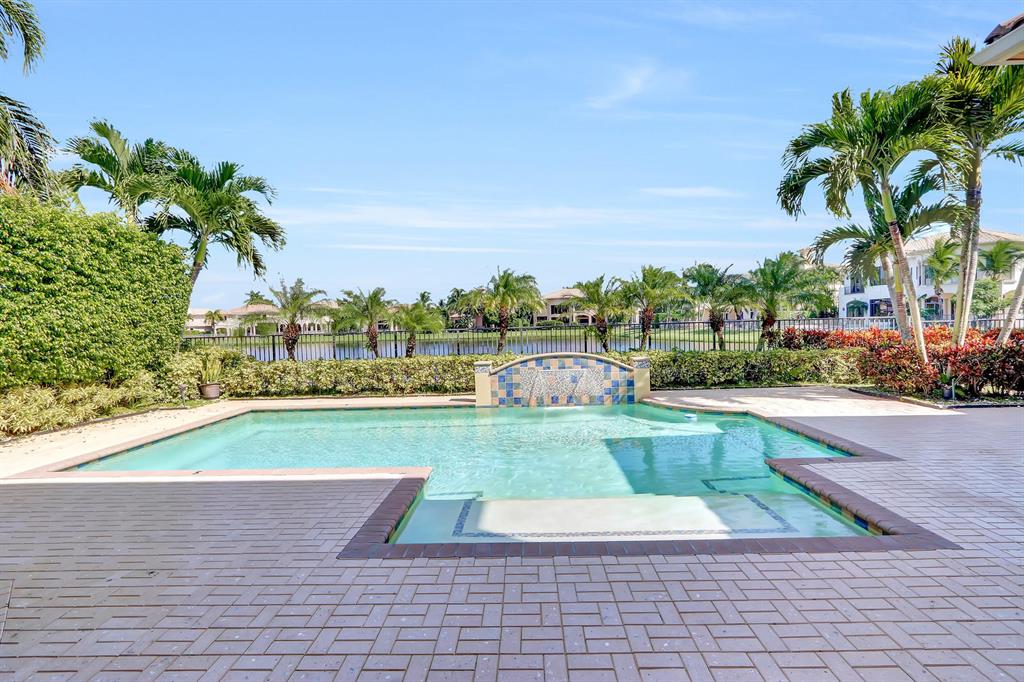 This is a beautiful Balmonte waterfront estate at the OAKS in Boca Raton, featuring 5 bedrooms, 5 full baths and 2 half baths. The master bedroom with his and her walk in closets, the master bath with his and her w/c, separate shower and jacuzzi bath tub. One additional bedroom suite on the ground floor, a cabana bath leading to the pool area, the remaining 3 bedrooms suites, 1/2 bath and loft upstairs. Three car split garage configuration with one of the garages leading in to the private office . Elegant marble flooring throughout first floor, formal living room with stunning views of the heated pool and lake,gourmet kitchen with granite counter top opens to the family room. The home is entirely protected with high impact glass, accordion shutters and a 3 zone storm generator.