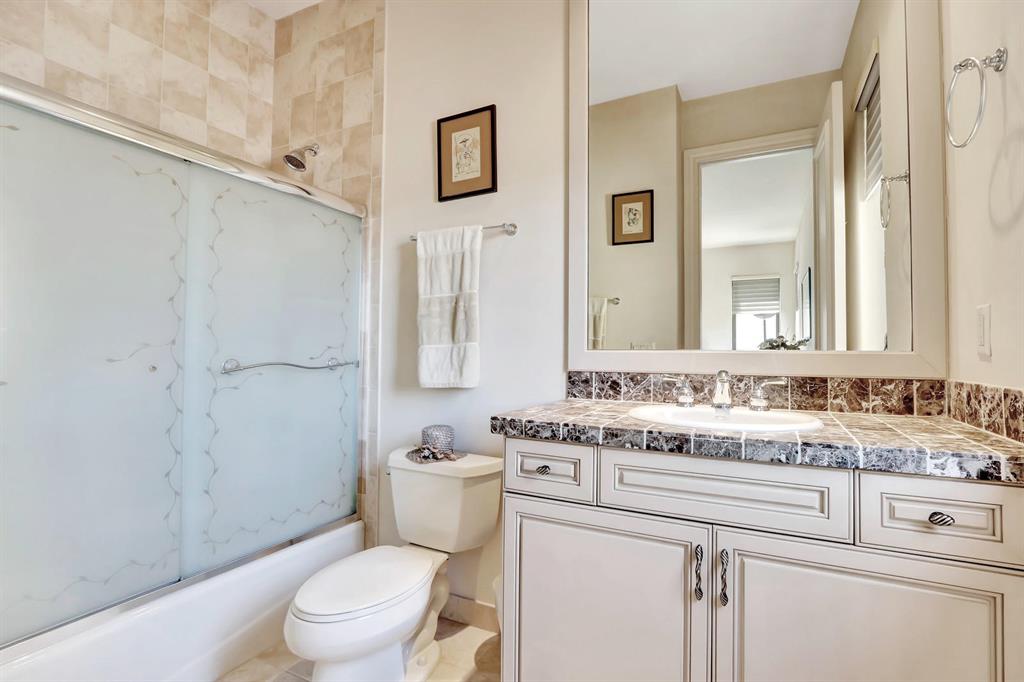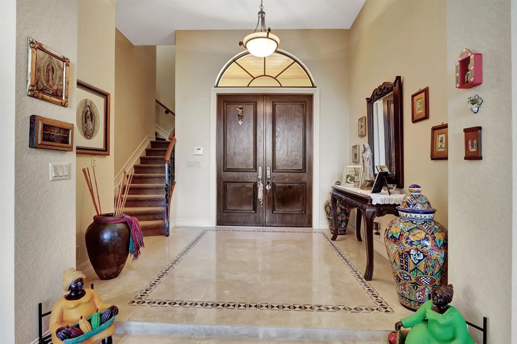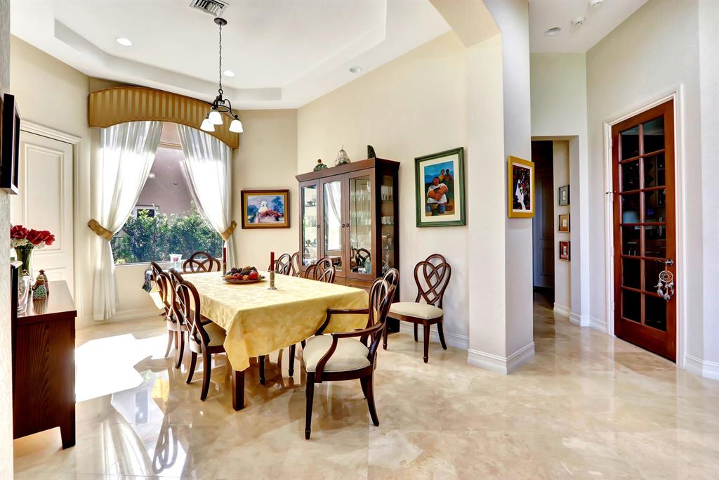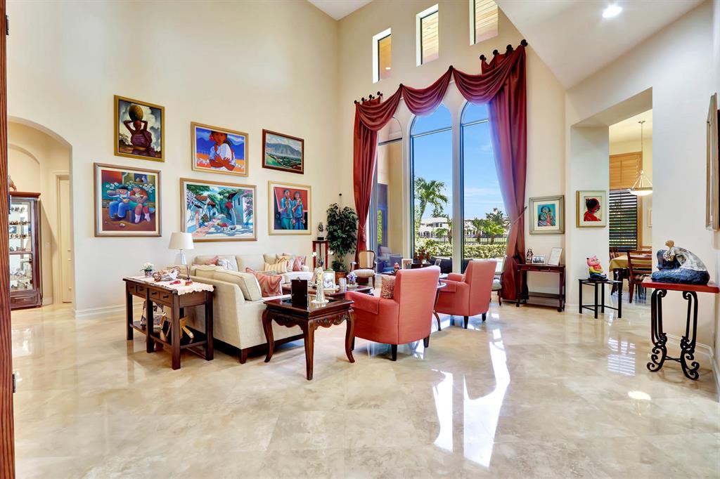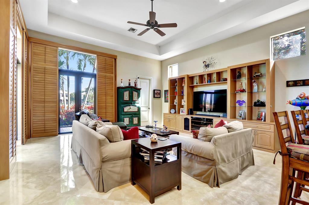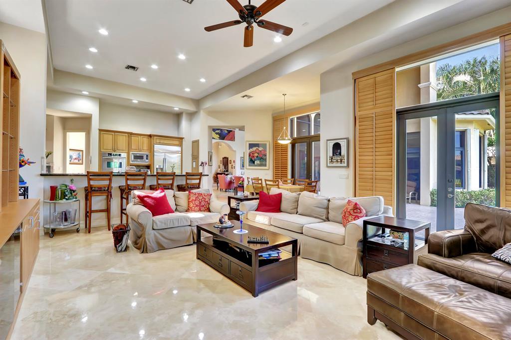 This is a beautiful Balmonte waterfront estate at the OAKS in Boca Raton, featuring 5 bedrooms, 5 full baths and 2 half baths. The master bedroom with his and her walk in closets, the master bath with his and her w/c, separate shower and jacuzzi bath tub. One additional bedroom suite on the ground floor, a cabana bath leading to the pool area, the remaining 3 bedrooms suites, 1/2 bath and loft upstairs. Three car split garage configuration with one of the garages leading in to the private office . Elegant marble flooring throughout first floor, formal living room with stunning views of the heated pool and lake,gourmet kitchen with granite counter top opens to the family room. The home is entirely protected with high impact glass, accordion shutters and a 3 zone storm generator.