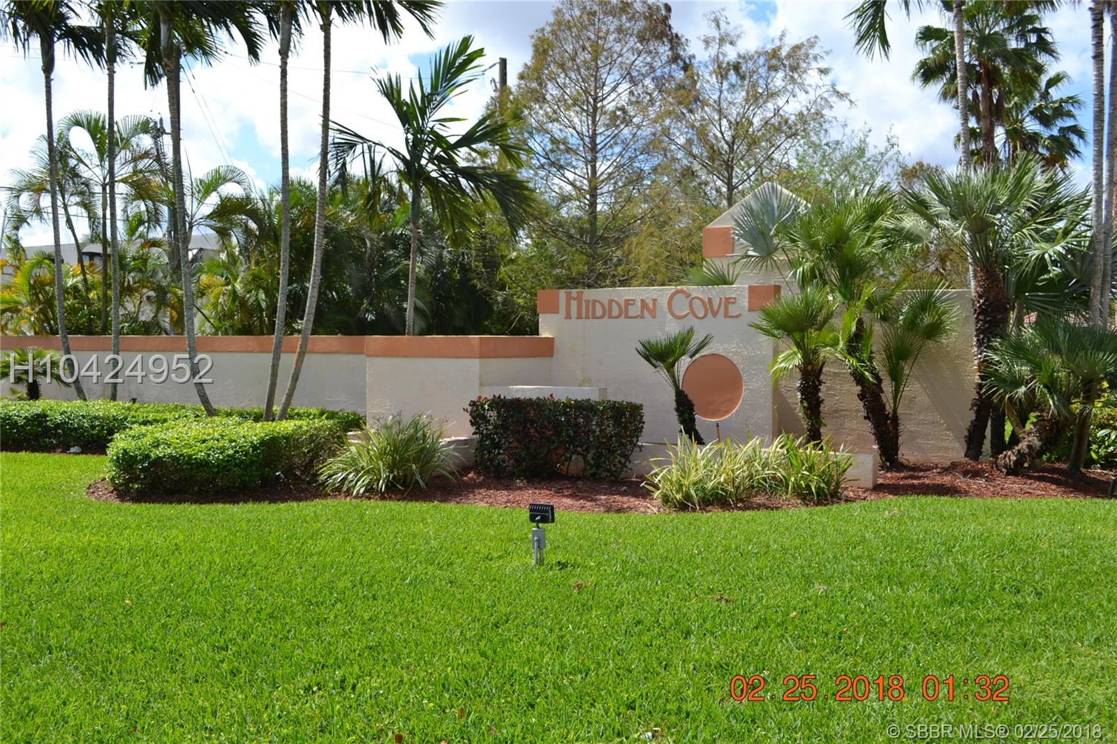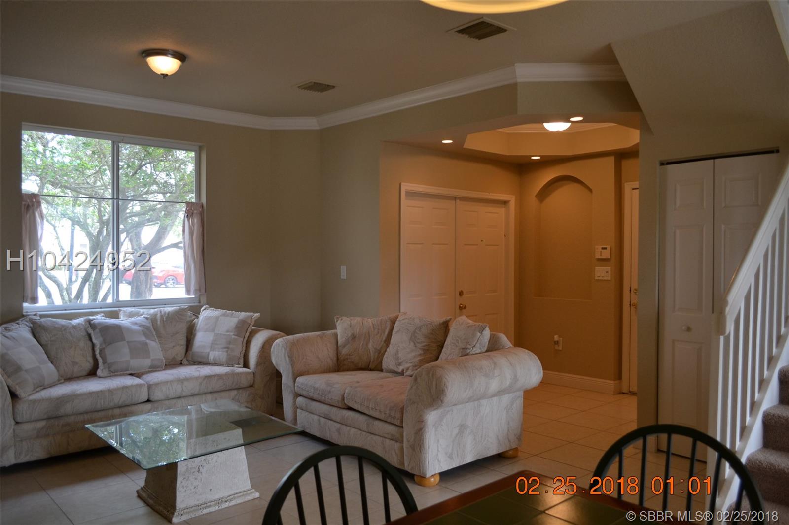 Beautiful 3 bedroom 2 1/2 baths CORNER unit townhouse for sale in the desirable community of Hidden Cove in Davie. Feel of a single family home. Close to Nova University, Broward College, Hard Rock Hotel and Casino, Turnpike, I-95 and I-595, within walking distance to shops and restaurants. Gorgeous kitchen and bathrooms, title on the 1st floor and carpet on the 2nd floor. California custom closets, functional and large inside laundry room with utility tub and plenty of storage. Very private and large backyard with NO NEIGHBORS ON THE BACK. A must see!!!
