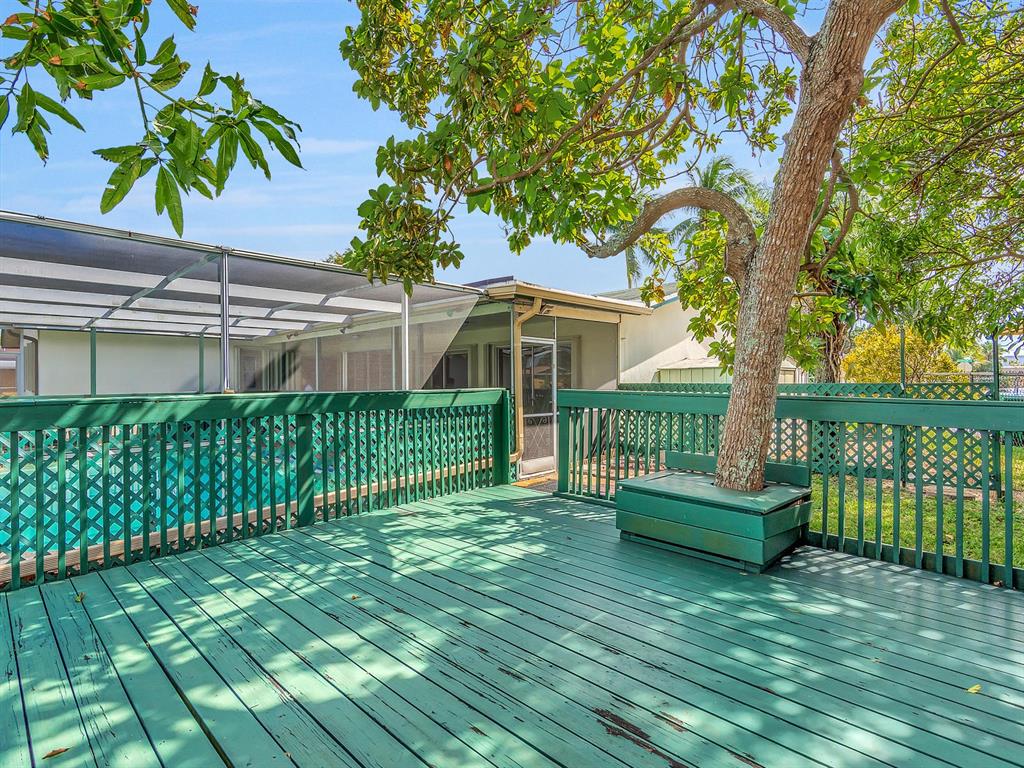 The beautiful waterfront ranch style home stretches across a huge lot in the highly desirable neighborhood in "The Knolls." This home features a breathtaking pool view and a wooden deck and extra yard space great for entertaining. It is immaculately kept and is tiled throughout with updated bathrooms, newer roof and central AC and accordion shutters. This property is a must see! It will not last, so present all offers today!