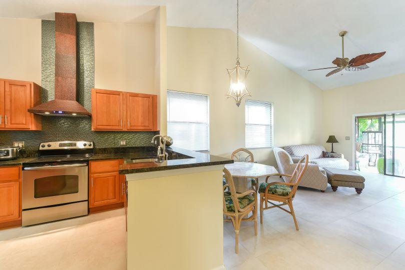 Completely updated, 1 story, lake front, townhome with attached garage! Come inside and enjoy spacious living areas with soaring cathedral ceilings and beautiful tile flooring throughout along with an inviting kitchen which boasts granite counter tops, stainless steel appliances and tons of wood cabinetry. All of the bedrooms are spacious as well and both bathrooms have been flawlessly upgraded. This townhome also offers an enclosed Florida room as well as a covered patio overlooking a large green space and lovely lake. Timberline is a desirable subdivision in central West Palm Beach which offers its residents resort style amenities including a pool and tennis. Timberline is located just minutes from I-95, downtown West Palm Beach and Palm Beach International Airport.