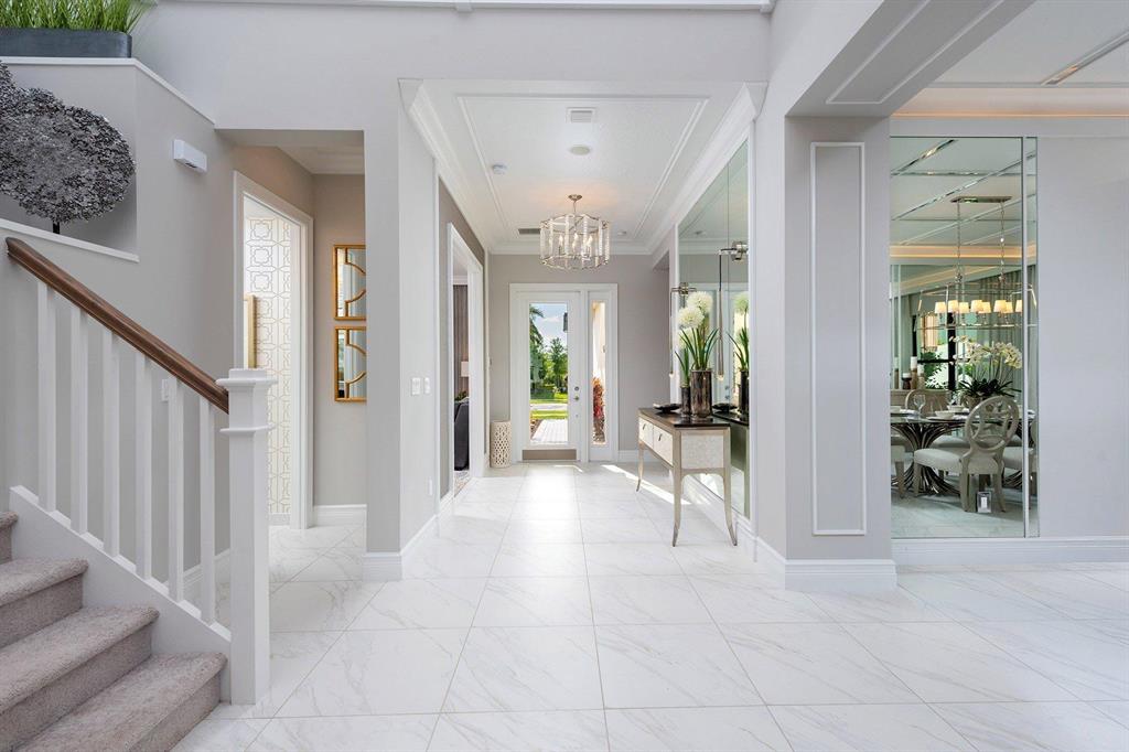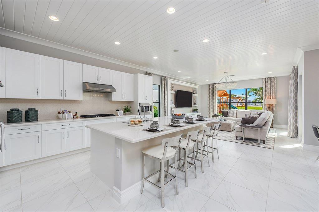Stunning new construction home in Boca Bridges that will be complete fall 2020. The contemporary Somerset Grande model offers an abundance of space with modern finishes. The gourmet Kitchen includes beautiful Apex Arctic White cabinets with upgraded enhancement package including upper and lower cabinet lighting, pot and pan drawers, trash roll-out, upgraded backsplash, upgraded quartz countertops in Pure White, and an upgraded single bowl stainless steel sink. All appliances are stainless steel including a Kitchen Aid 42'' built-in refrigerator, built-in double oven, microwave, five burner gas cooktop, canopy style hood vented to exterior and dishwasher. The upgraded 24'' x 24'' rectified polished porcelain tile is throughout the main living areas with the exception of the den/5th bedroom