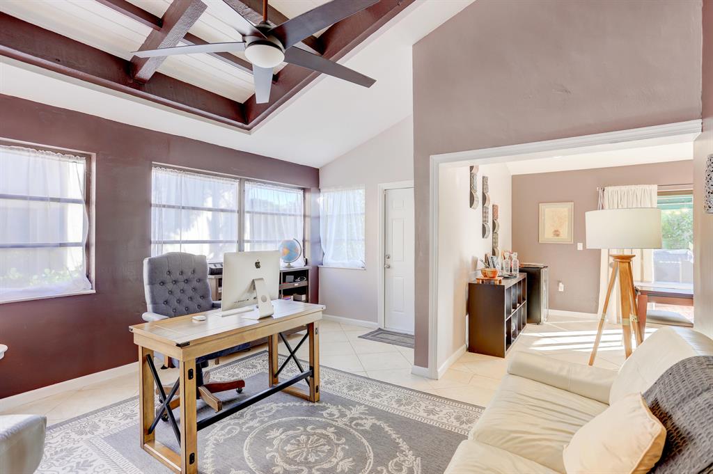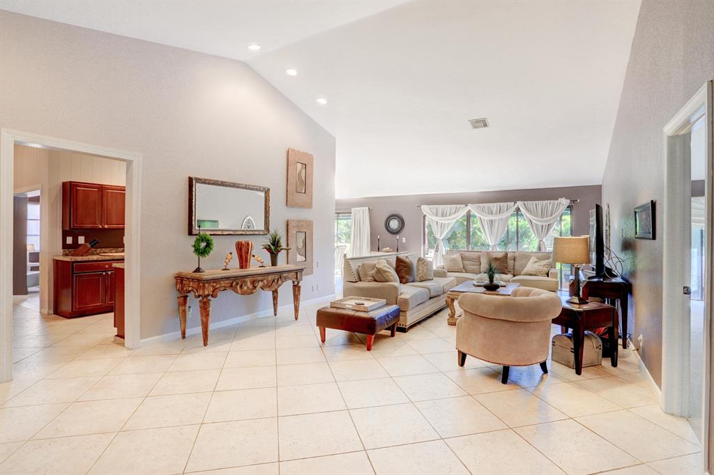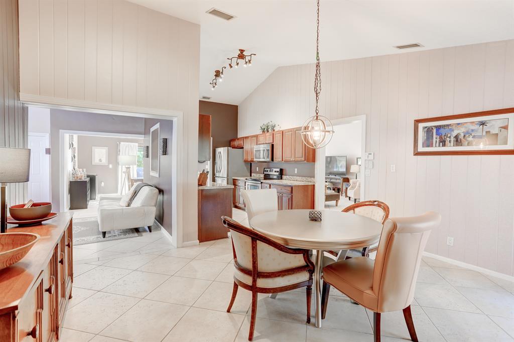 Come see this gorgeous 3 bed / 2 bath French inspired corner villa with stylish updates located within the quaint enclave community of L'Ambiance in Boca Raton. This charming residence features a bright and airy open concept floor plan with vaulted 12 ft ceilings and recessed lighting throughout, upgraded kitchen with premium wood cabinetry, granite countertops, stainless steel appliances and under-mounted double sink. This incredible home offers one of the only 2 car garages in the community with updated bathrooms, spacious bedrooms, Florida Room with textured walls, architectural accents and wood beam ceiling great for use as home office, workspace, media room or children's play area. SEE SUPPLEMENT.
