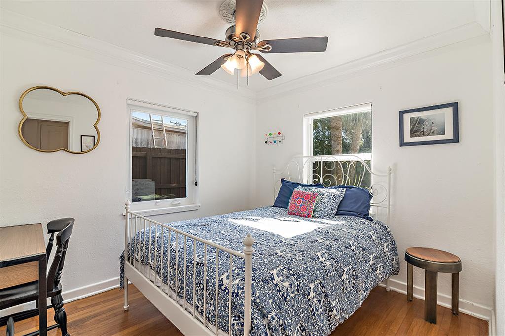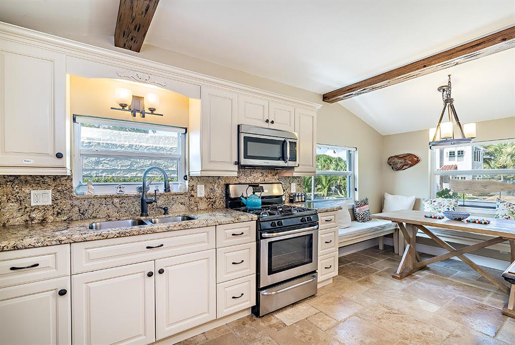 Beautifully renovated 1939 Bungalow-style CBS home located in highly desirable Historic Flamingo Park. This 2BR/2BA cottage is completely move-in ready and offers new impact windows, vaulted ceilings with original architectural details, crown molding throughout, gas fireplace, original hardwood floors, updated bathrooms, newer roof and A/C, new SS appliances, remodeled kitchen with custom wood cabinets, granite countertops, pecky cypress faux beams, and travertine stone tile flooring. Property is professionally landscaped and offers an oversized backyard, new privacy fence, outdoor lighting, wraparound deck, large shed, and sprinkler system. This charming home also has a new tankless gas hot water heater, new electrical panel, and new city gas, high elevation and plenty of room for a pool!