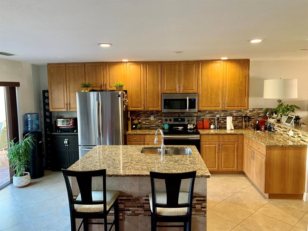 Beautiful completely renovated home in great 24 hour manned security gated community filled with amenities. This lake front home features tile downstairs and gorgeous laminate flooring in the stairs and upstairs area. The kitchen has an island as well all stainless steel appliances with 42'' cabinets and granite countertops all throughout. Upstairs you will find a spacious master bedroom with a huge walk in closet as well as a on suite with double sink. Bedroom 2 and 3 are very spacious and have a Lake view. Accordion shutters on second story and panels for the first floor. Liberty Bay amenities include clubhouse, tennis courts, gym, children's playground and beach style entry swimming pool and patrolled security. Lawn care is also included in your hoa fee! All measurements are approximate
