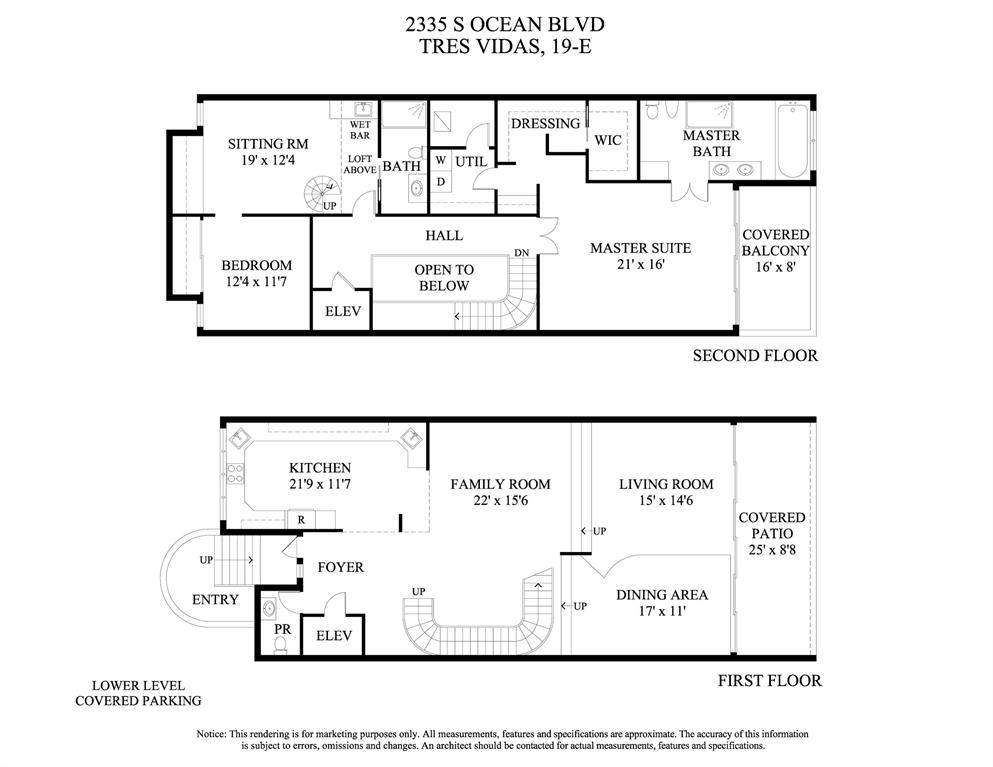 Sunrise & Sunset, Ocean, and Golf views. Private ocean access, this bit of paradise is literally at your back door! Originally a 3 bedroom and redesigned into a spacious 2 bedroom/2.5 bath townhome! Lives like a home, Can easily be converted back to 3 bedroom. Property features: vaulted ceilings, loft, 2 over sized car garage, sunken tub, steam shower, elevator, eat-in-kitchen, open floor plan, and many other features! Just minutes away from Worth Ave/The Royal Poinciana for exceptional shopping and dinning! PBI airport 20 minutes away!