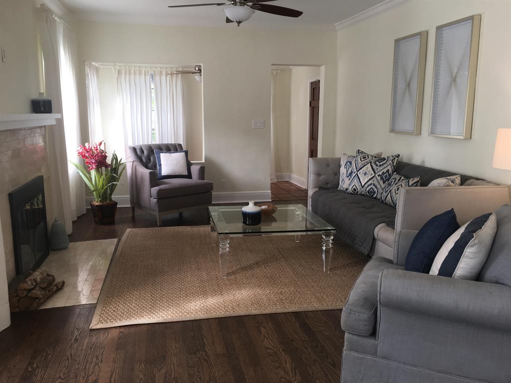 Gorgeous,charming updated 2/2 home, fireplace, open concept kitchen with white cabinets, grey island, granite & butcher block countertops, stainless steel appliances, full size samsung washer & dryer, new a/c, instant hot water heater, fenced back yard,beautiful remodeled bathrooms with frameless shower doors, long driveway. Close to City Place, shopping, restaurants.