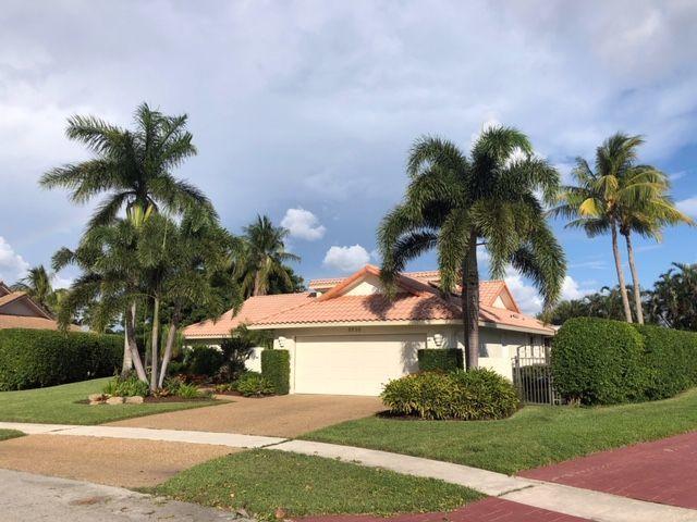 Prime location in East Boca Raton, backing up to what will be the new ''Boca National Golf Course''. Contemporary design interior, mature trees - Mango, coconuts and Royal palms, privacy hedges and professionally landscaped beds and yard. Custom kitchen features wood cabinetry with granite and bar and breakfast bars. Living room soars with 2-story high beams and clerestory lights for natural light. Travertine floors throughout and 2 BRs have beautiful bamboo wood. Pool is fully screened plus with special bracing and has child fencing included. Home boasts solar hot water and passive solar for pool. Home is freshly painted inside and out. Master bath has pocket doors for privacy and has custom closet. Living space continues into a 600 sf Florida Room/lanai