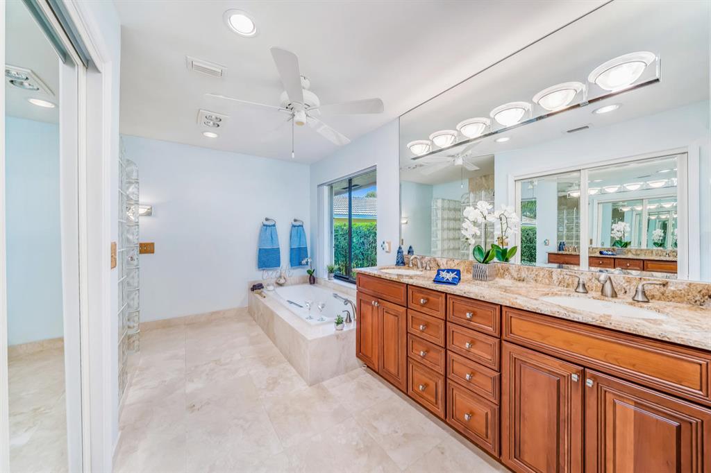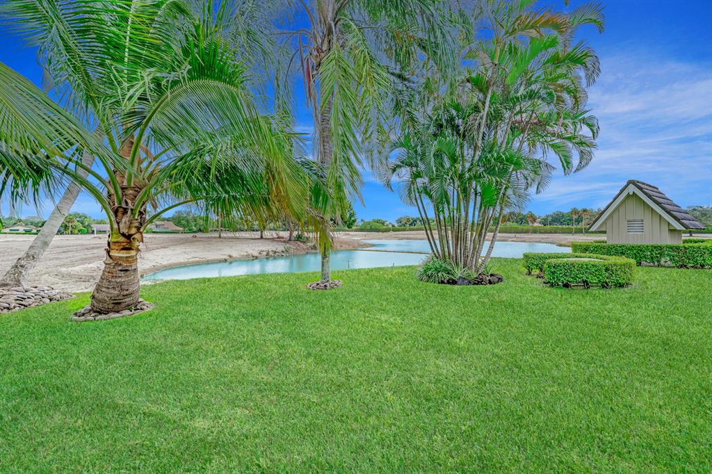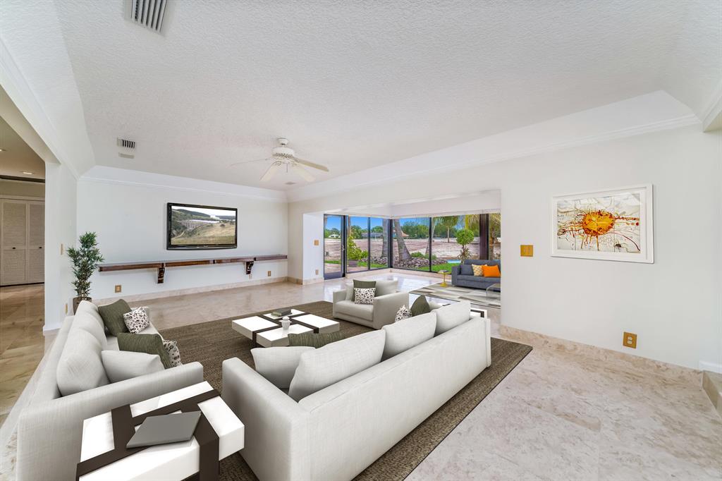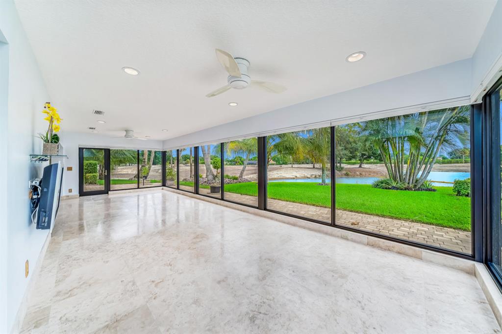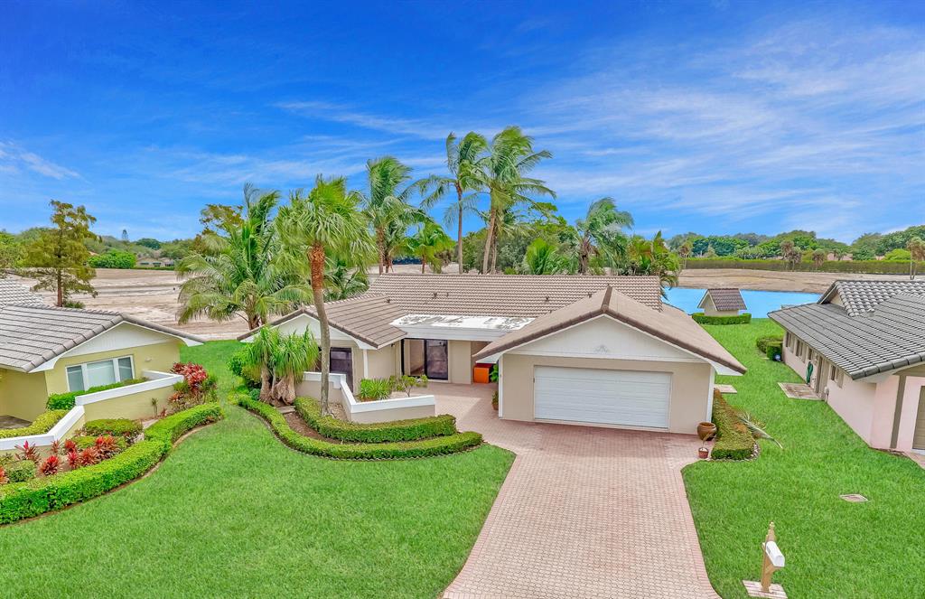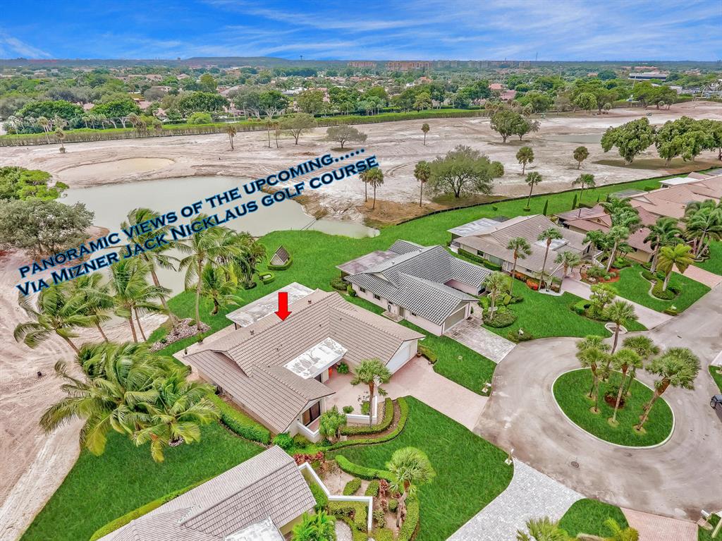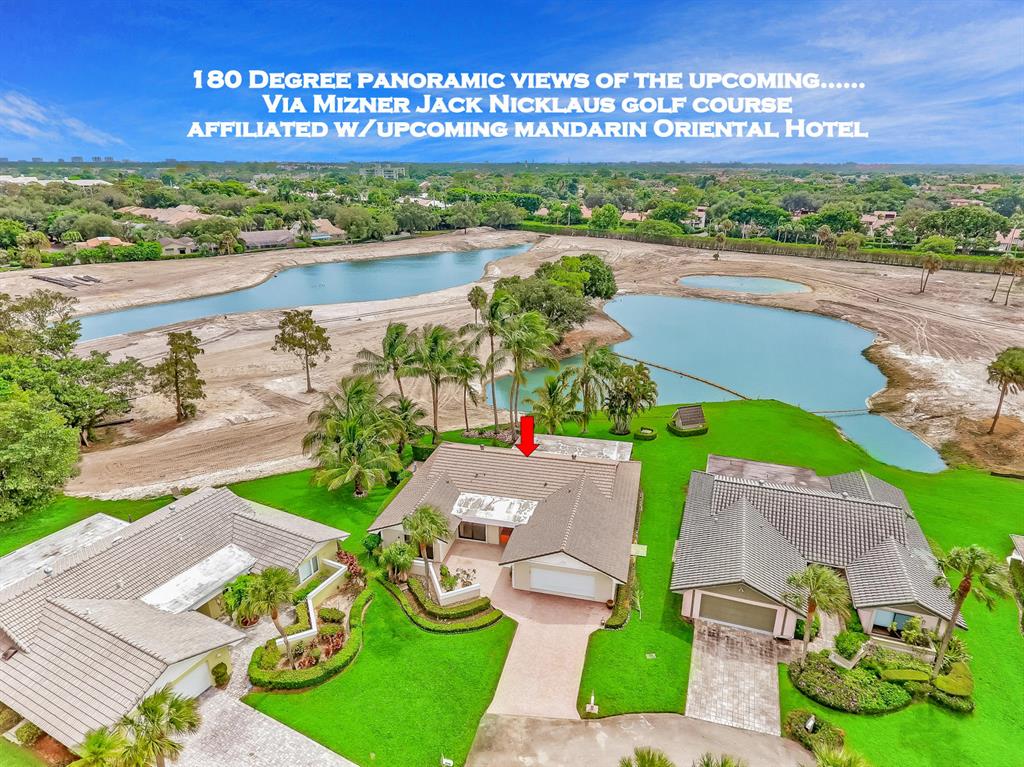 Enjoy magnificent 180 degree panoramic golf & lake views from almost every room in this light & bright, 3 Bedroom, 2.5 bath, 2 car garage home, located on a cul-de-sac on possibly the largest lot in the community (9,654 square feet). Spacious Home is ''Truly'' 2,790 square feet under air. Double door entry to beautiful foyer, opening up to the enormous living room with marble flooring throughout w/south facing scenic views of what will be the 4th hole in the upcoming Via Mizner Jack Nicklaus Signature Golf Course that is affiliated with the Mandarin Oriental hotel. All sliders are Impact Hurricane Glass. Fabulous Kitchen features granite countertops & backsplash, new cabinetry including glass doors for display, updated stainless appliances including Samsung refrigerator w/Flex Zone-4 zone,