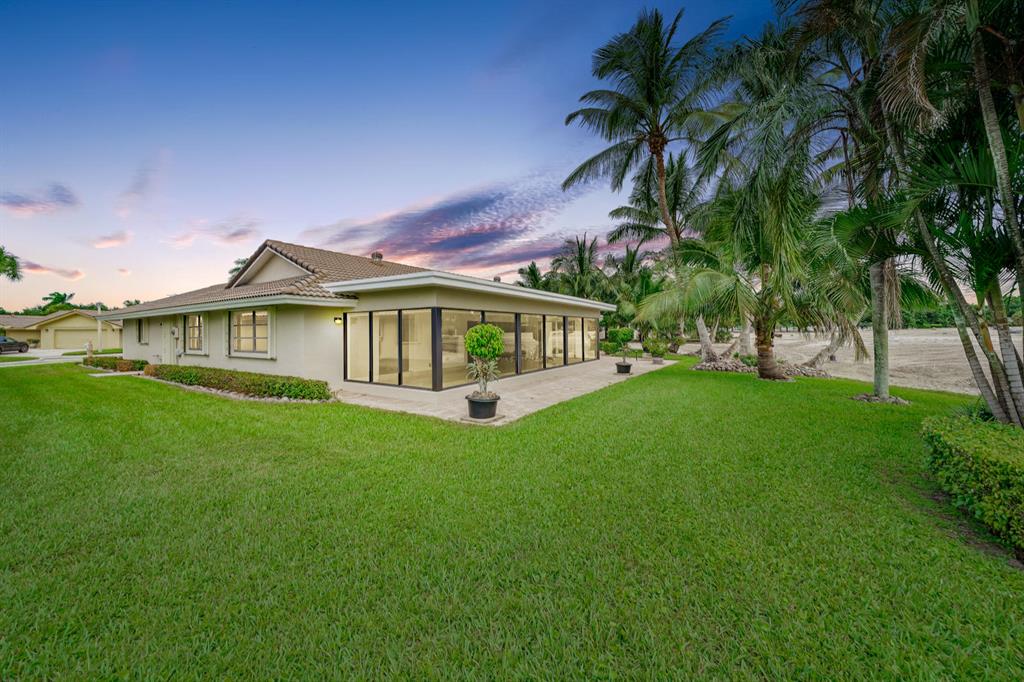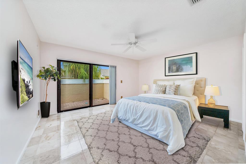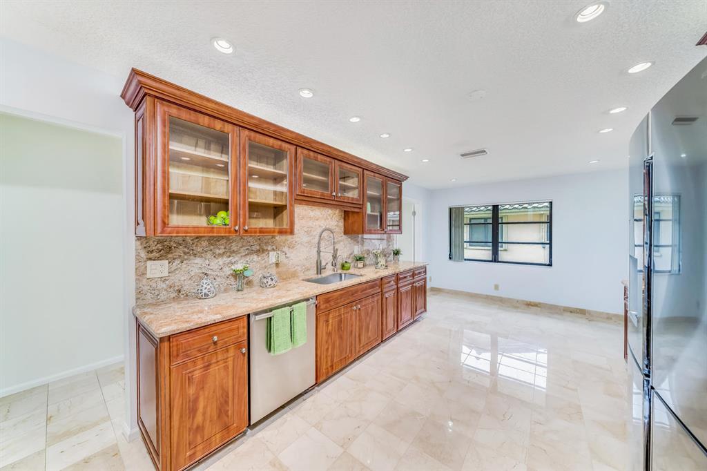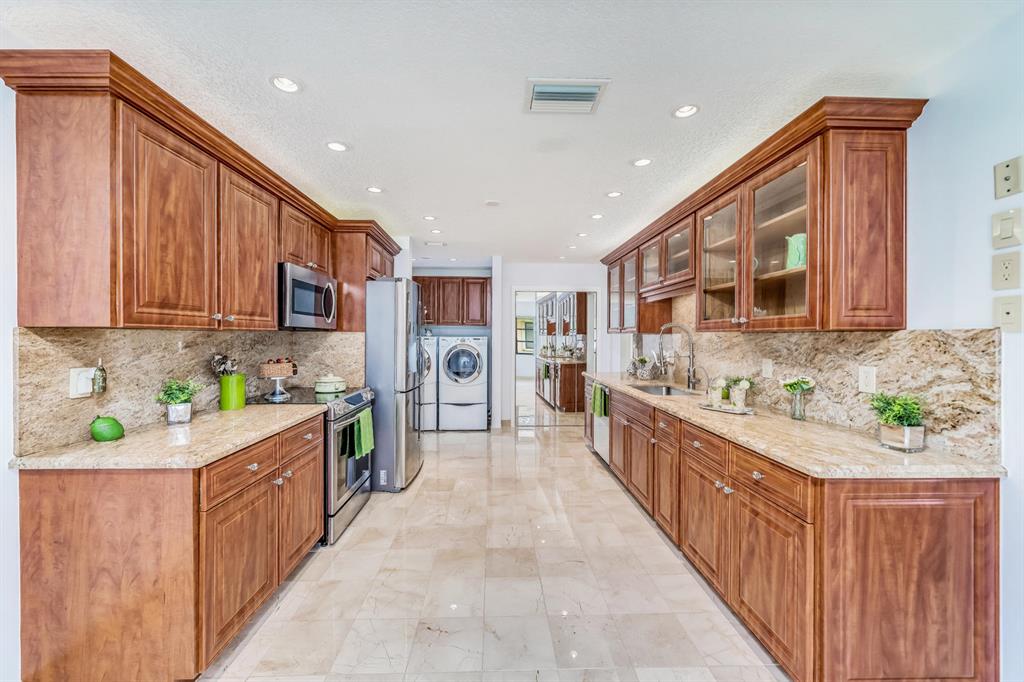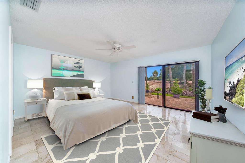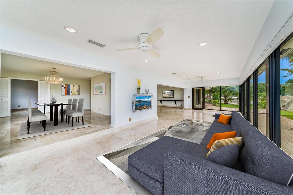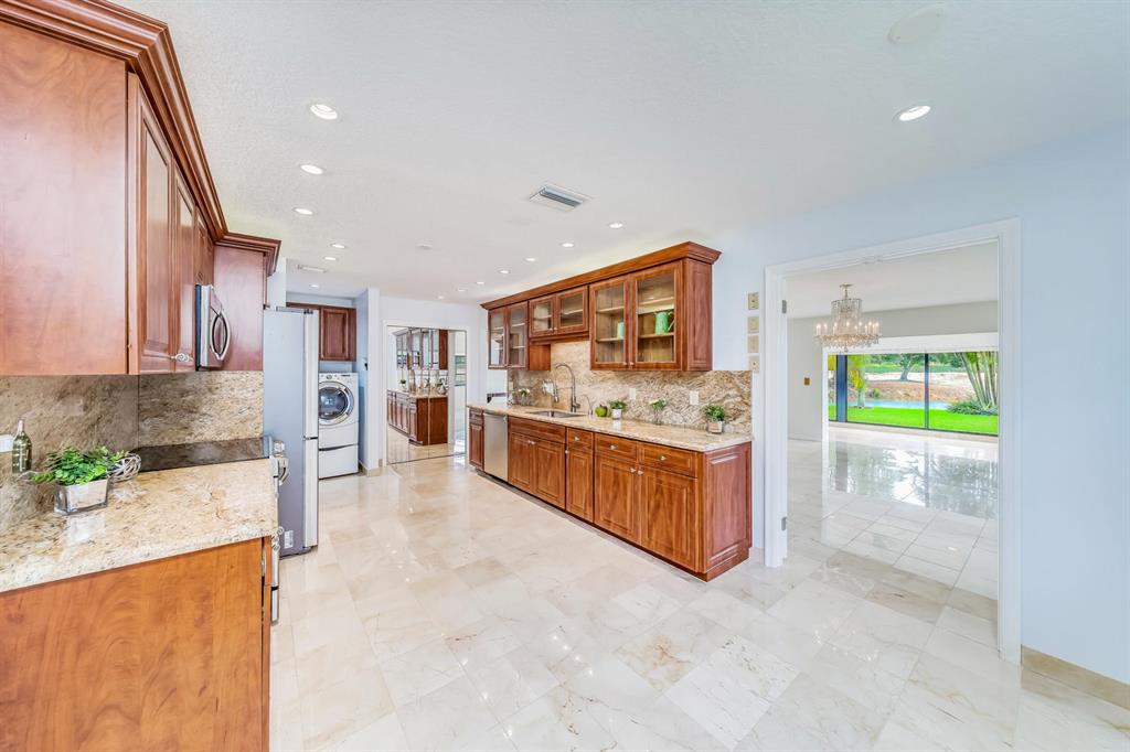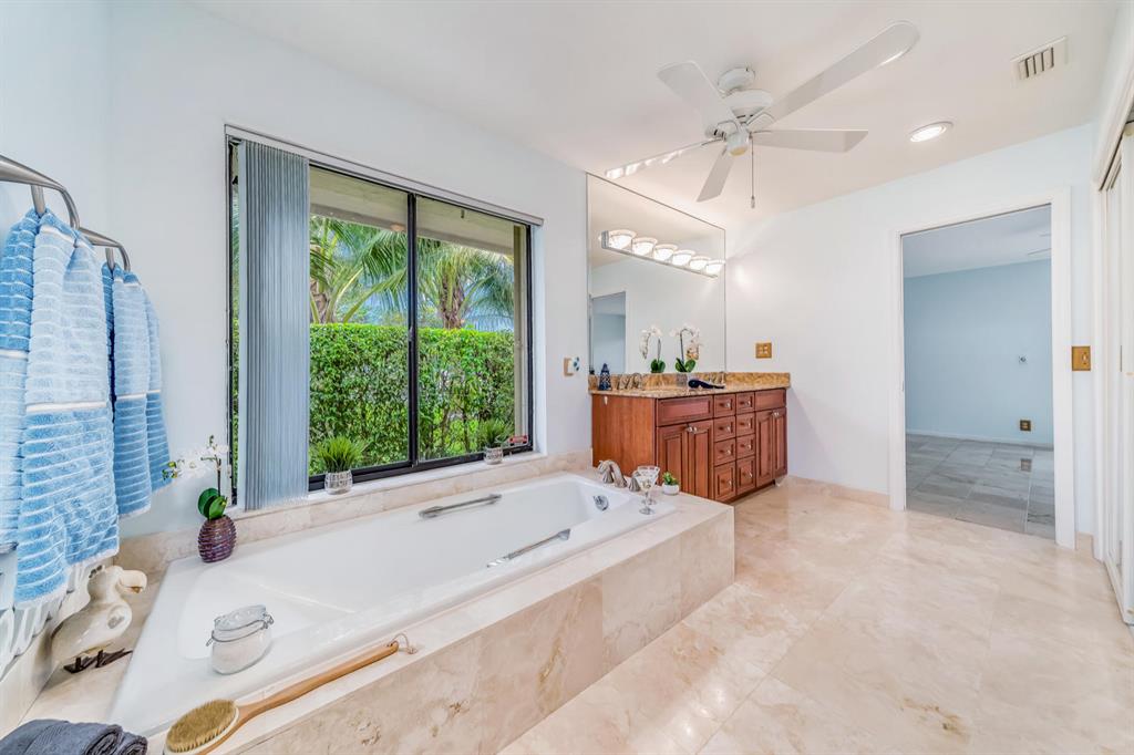 Enjoy magnificent 180 degree panoramic golf & lake views from almost every room in this light & bright, 3 Bedroom, 2.5 bath, 2 car garage home, located on a cul-de-sac on possibly the largest lot in the community (9,654 square feet). Spacious Home is ''Truly'' 2,790 square feet under air. Double door entry to beautiful foyer, opening up to the enormous living room with marble flooring throughout w/south facing scenic views of what will be the 4th hole in the upcoming Via Mizner Jack Nicklaus Signature Golf Course that is affiliated with the Mandarin Oriental hotel. All sliders are Impact Hurricane Glass. Fabulous Kitchen features granite countertops & backsplash, new cabinetry including glass doors for display, updated stainless appliances including Samsung refrigerator w/Flex Zone-4 zone,