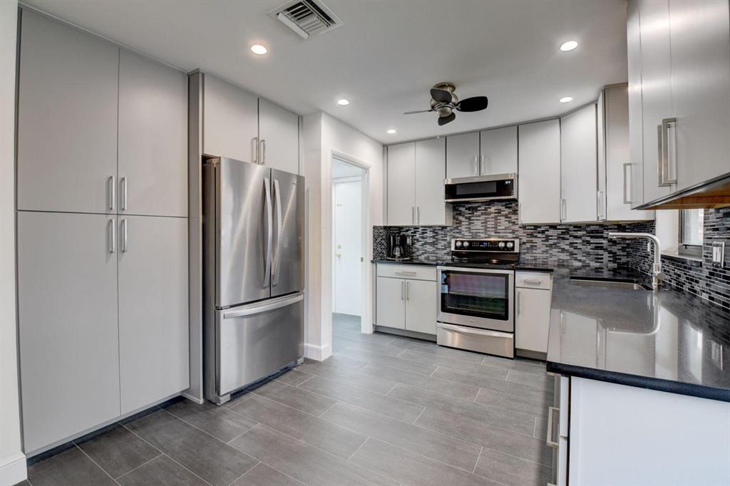 Fantastic opportunity to own this sleek and newly renovated 3 bedroom, 2 bathroom home in one of Boca's best kept secrets...Villas Del Mar. Interior features include brand new porcelain tile floors, modern style kitchen with custom cabinetry, stainless steel appliances, quartz counter tops, and an over sized living space with additional Florida room. New duct work, newer hot water heater, freshly painted throughout and full hurricane protection, including partial impact windows. Located on a quiet cul de sac, with large fenced front patio within walking distance to the community pool. Villas Del Mar is situated across from beautiful Lake Placido park and centrally located within walking distance to shops and restaurants. Close to I-95 and in Boca's A-rated school district.
