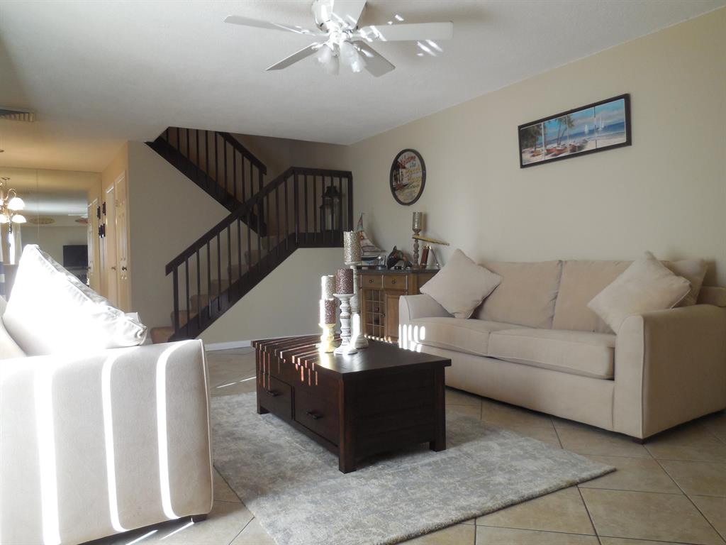 Beautifully renovated 2 bedroom townhome with gorgeous lake views. This home is in excellent condition, newer A/C (2016), 4 sets of sliders to patio and balconies for plenty of light, private fenced courtyard, updated kitchen , master and guest bath. Tastefully decorated with furniture negotiable.