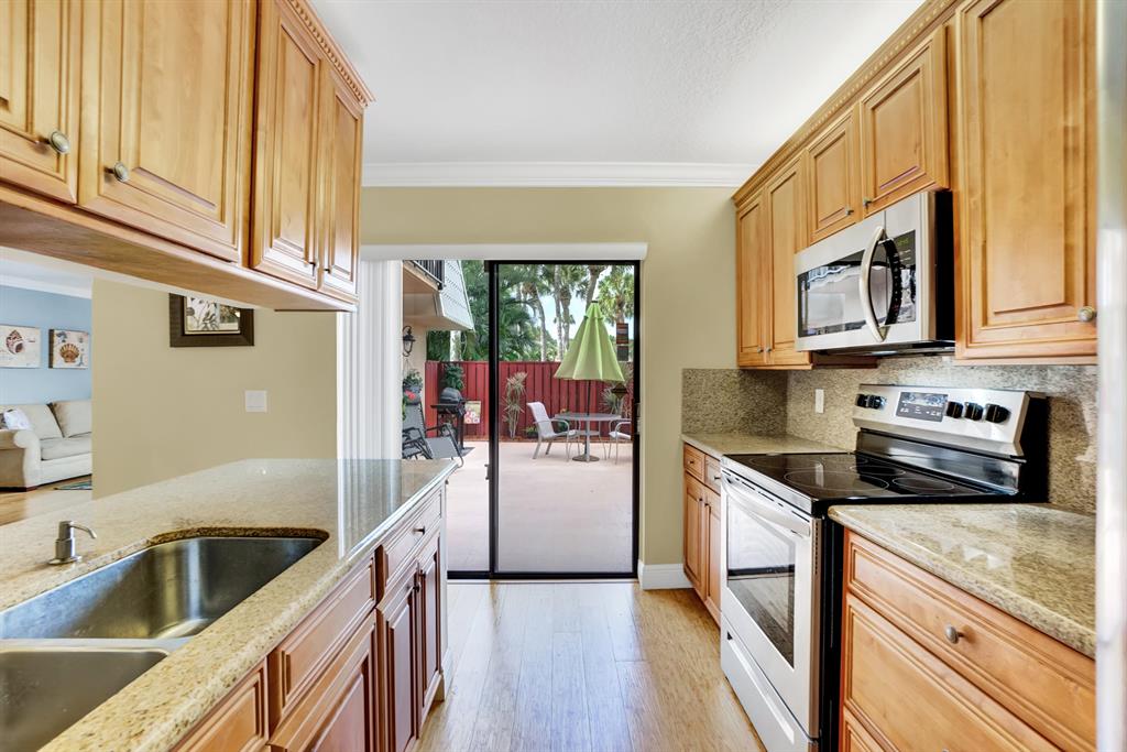 You must check out this 2 bedroom, 2 & 1/2 bathroom townhouse with two master bedrooms and a huge patio that is waiting for you, in the sought after Villages of Sandalwood Lakes community. This home offers remodeled kitchen with stainless steel appliances, granite counters & backsplash, remodeled bathrooms, crown molding & high baseboards throughout, bamboo floors in living areas and stairs. Patio is great for enjoying morning coffee, evening cocktail or gathering with friends. Close walk to the olympic sized pool, kid pool, picnic & bbq area, playground, sand volleyball and tennis, basketball, & racquetball courts, etc in the beautifully tree lined entrance to the Villages if Sandalwood community. Centrally located within minutes to downtown WPB, PB Int'l airport and beaches. Welcome Home