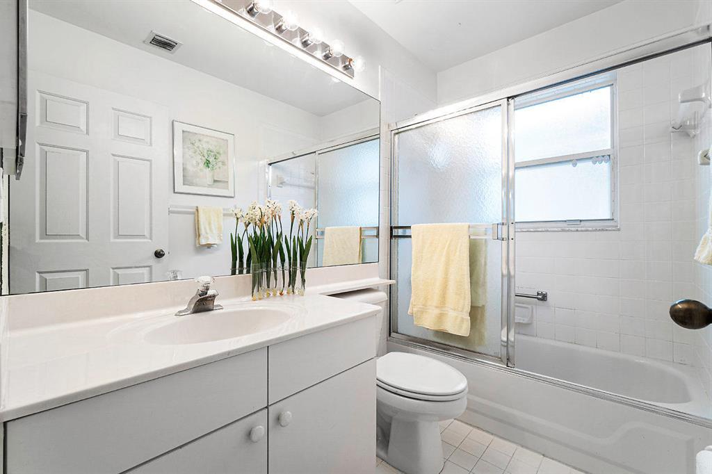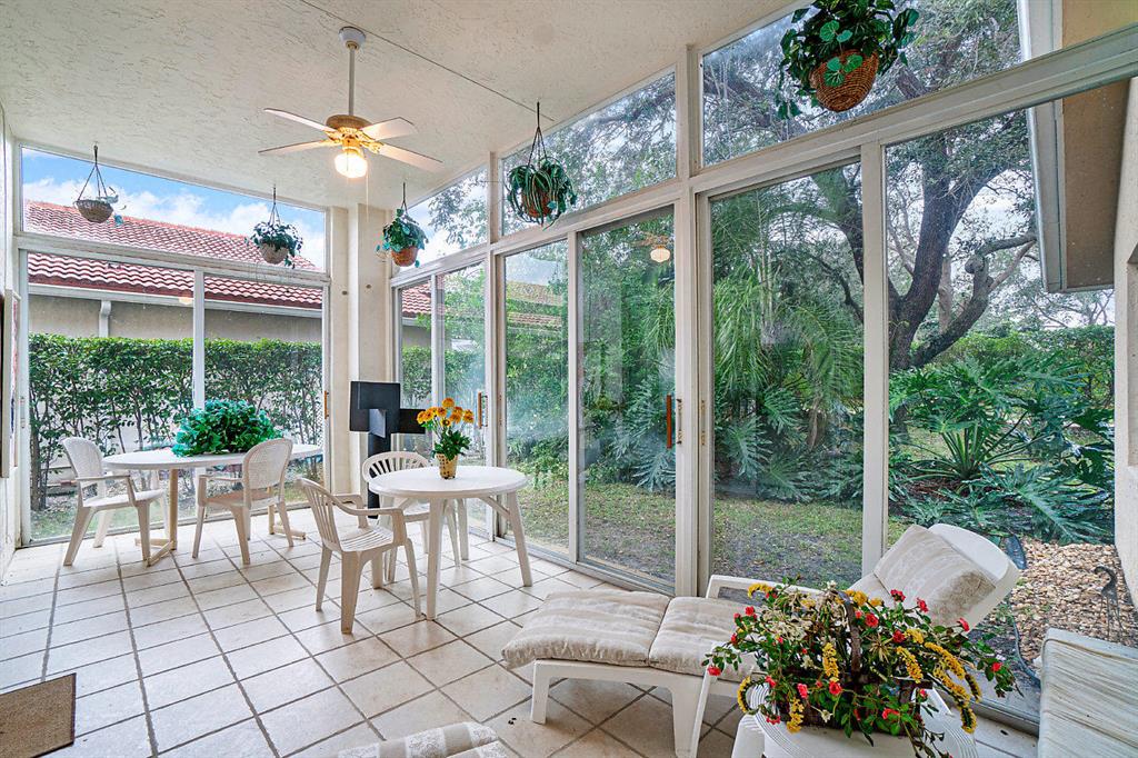 Bring your buyers to this ALL AGE community and they will love this roomy, light, bright and airy end unit. Features include: open floor plan, vaulted ceilings, remodeled kitchen with glass counters and backsplash. There are sliding glass doors from the living room to the quiet and peaceful porch setting. The pool and clubhouse are within walking distance. Excellent shopping and Boca Raton schools are close by. Easy to show.