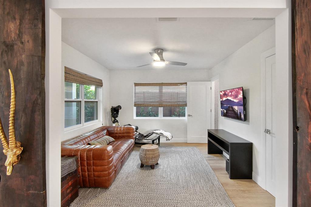 This is a rare opportunity to own a remodeled 1963 property in Northwood Shores, a block from the Intracoastal waterway. This quaint and contemporary 2 Bedroom 2 Bath with large Den or 3rd Bedroom defines sophisticated living in a serene and lush environment. This masterpiece of craftsmanship and design features Impact Glass, Hand Built Cabinetry, Thermador, Electrolux, and Bosch Appliances. Brazilian Quartzite Counter Tops, Built-In Custom Bar, Laundry Room and Phillip Jeffries Wall Coverings Accent the home. This Home Features Full Built-in Master Closet, Scraped Vegan Wood Floors, and Grass In-Laid Driveway That are Enclosed By a Viking Electric Gate System. Open Floor Plan, No Hallways, 3rd Bedroom/ Den Has Barn Doors. There is a well for irrigation. No train noise, Very Walk able.