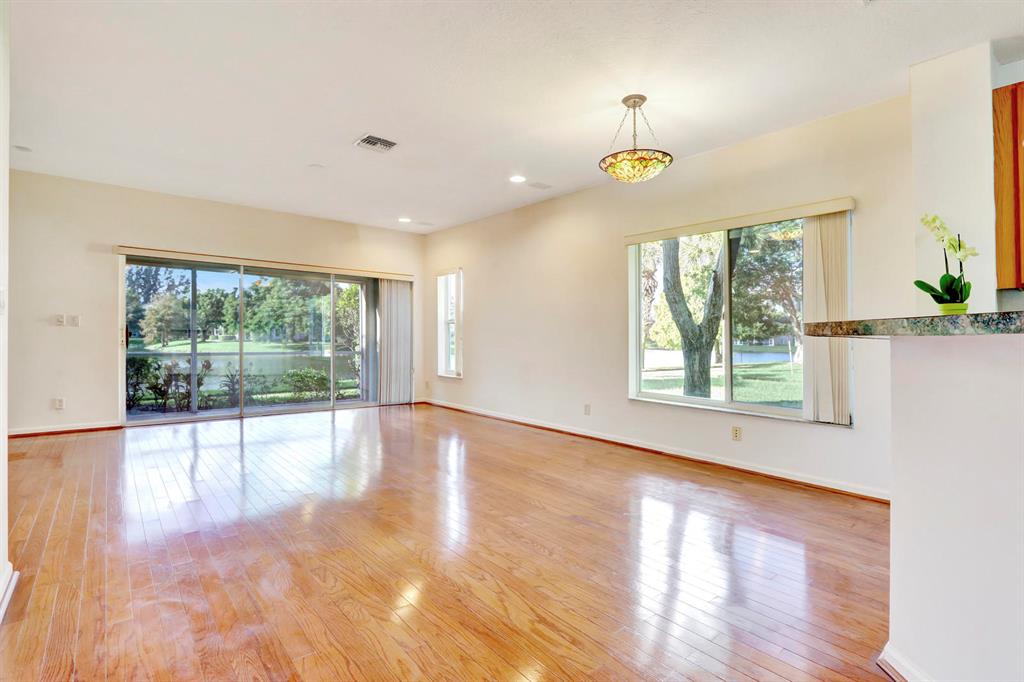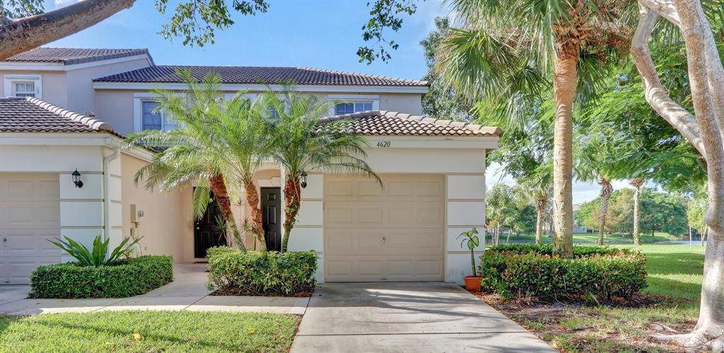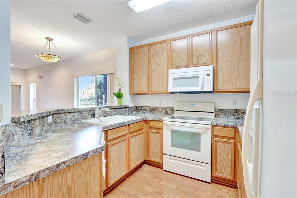 Fantastic lake view! Beautiful Renovated 2 BR, 2.5 bath, 1 Car garage end unit. Brand new wood flooring throughout the home. Kitchen features brand new microwave and dishwasher, extended kitchen cabinet. Surround Sound, many upgrades. A/C unit and Washer /dryer are all around 2016. New installed Garage opener. An very open floor plan!This end unit has the extra windows making it very bright. HOA includes cable, internet, insurance,gated security, community pool, volleyball court, clubhouse, gym, roof maintenance, trash removal, pest control, exterior wall painting,common area and lawn! Close to the FITTEAM ballpark, Gardens Mall, Downtown WPB and the airport.