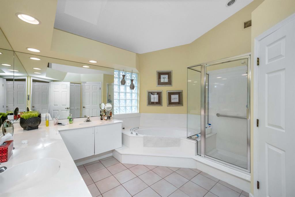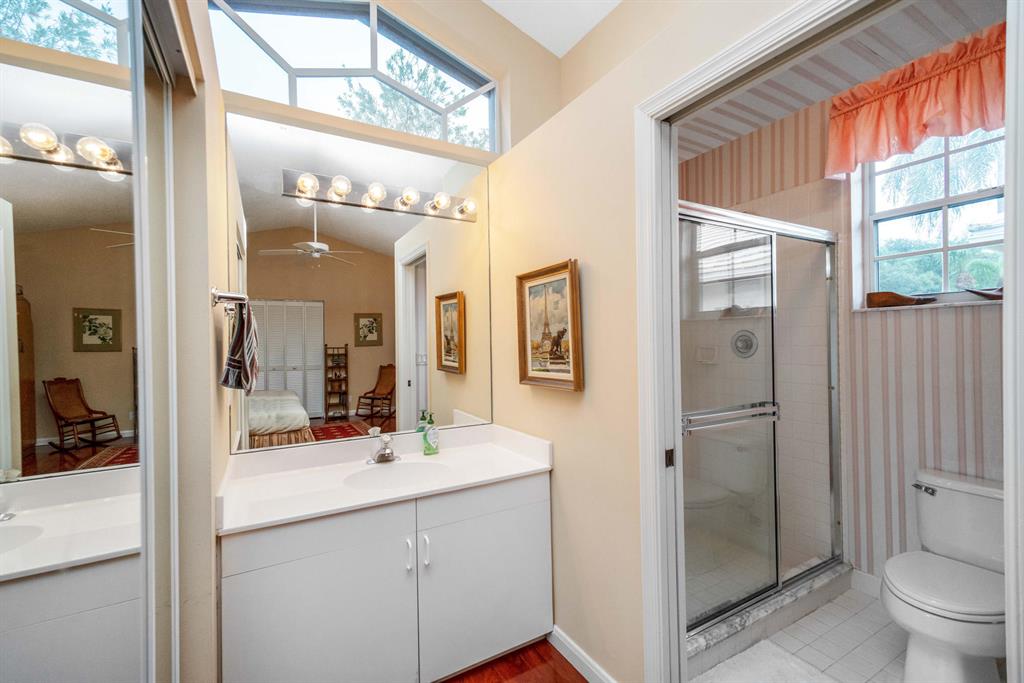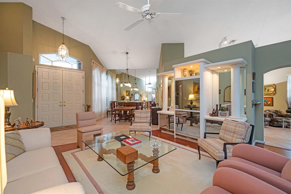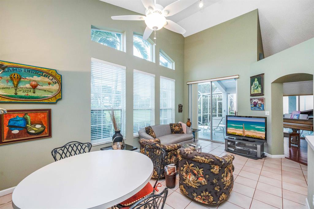 Welcome home to this seldom offered floor plan which gives you a true 3 bedroom and 3 bath home set on the West golf course. The living room, dining area and kitchen all have vaulted ceilings with the living room having a cherry veneer floor and two sets of sliders to the oversized lanai. The master is spacious with an oversized bath with separate tub and shower. The guest room at the end of the hall has it's own en-suite bath and two closets while the other guest room is currently being used as a library. Eastpointe is well sought after country club community with 2 golf courses and a new recreation center coming soon!