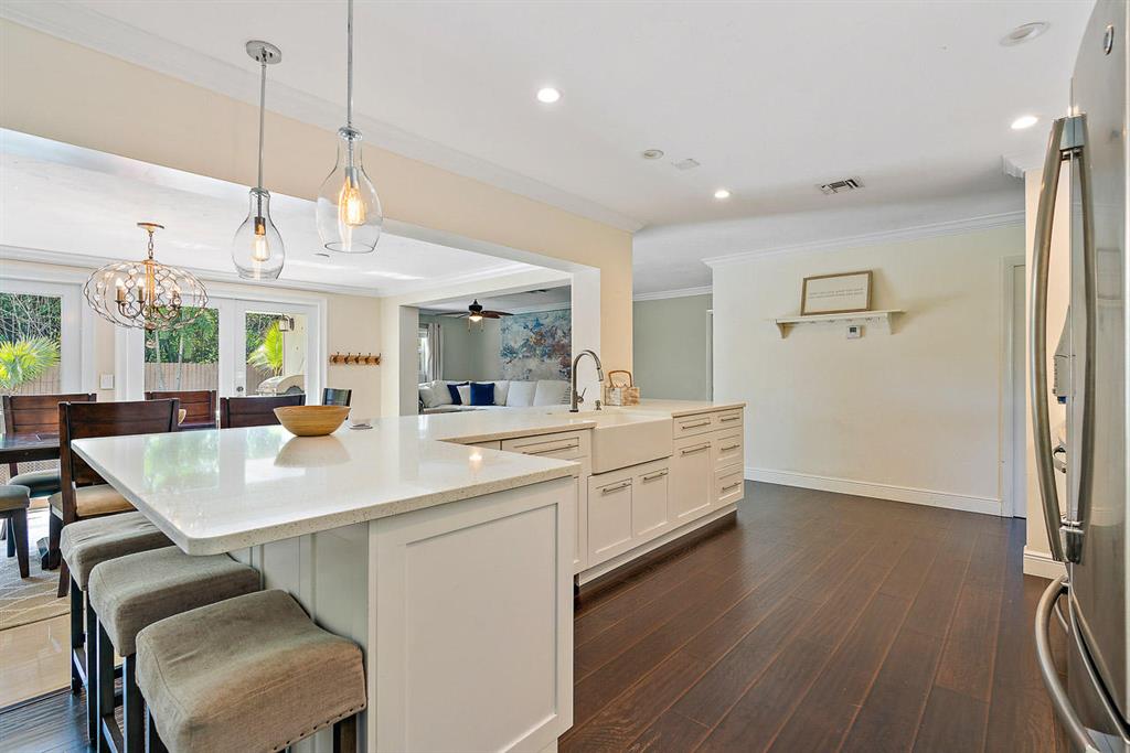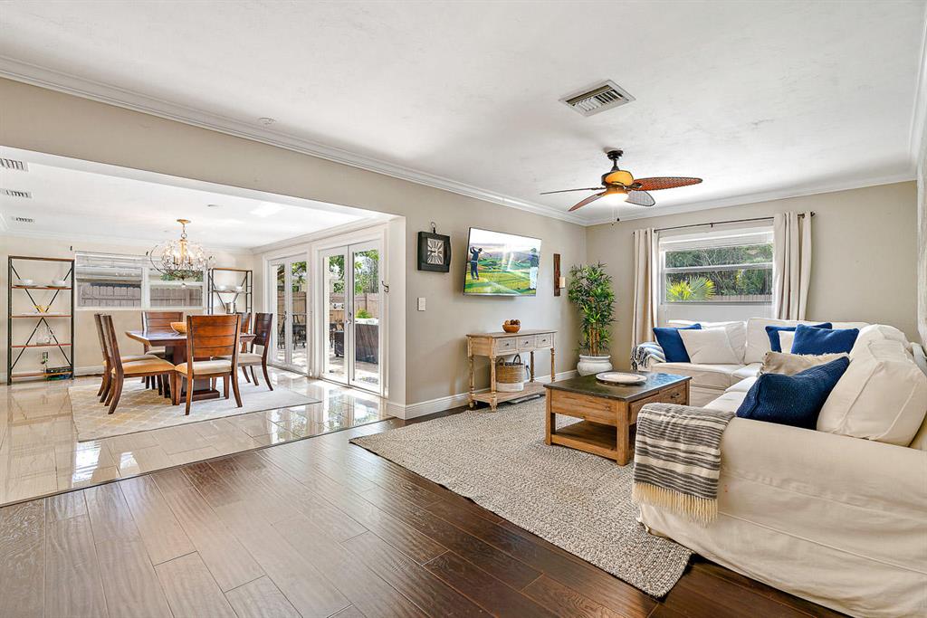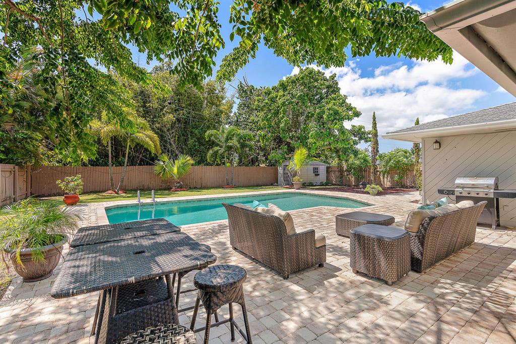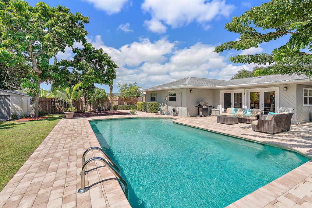 Renovated home inside and out in sought after community with impact windows and doors. Open kitchen with stainless steel appliances and large island creates a great place to entertain while overlooking the private fenced backyard and salt water pool. Floors have been replaced throughout along with bathroom upgrades. Large side and backyard are perfect for activities and pavers have been replaced. Newer salt water pool system (2018) motor for pool pump(2019) and tiles in pool. Additional storage is located in the shed near the mature avocado tree.
