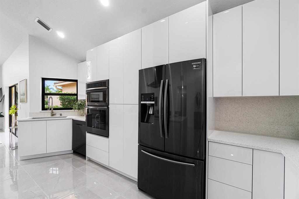 This completely renovated one-story home features modern and sophisticated finishes throughout. From the moment you step into the spectacular home, the light, bright, and open floor plan amazes. The gourmet kitchen offers beautiful European-inspired cabinetry with state-of-the-art appliances. The focal point island offers eating space as well as the stylish hood vent, adding a touch of elegance. The kitchen flows directly into the dining area and living room with voluminous ceilings. Sliding doors lead to the patio with a long tranquil garden view. The impressive master suite also features sliding doors to the outdoor space, two large closets with custom shelving, and a spa-like master bathroom with a free-standing tub, dual sinks and a massive walk in shower. Two additional bedrooms --->