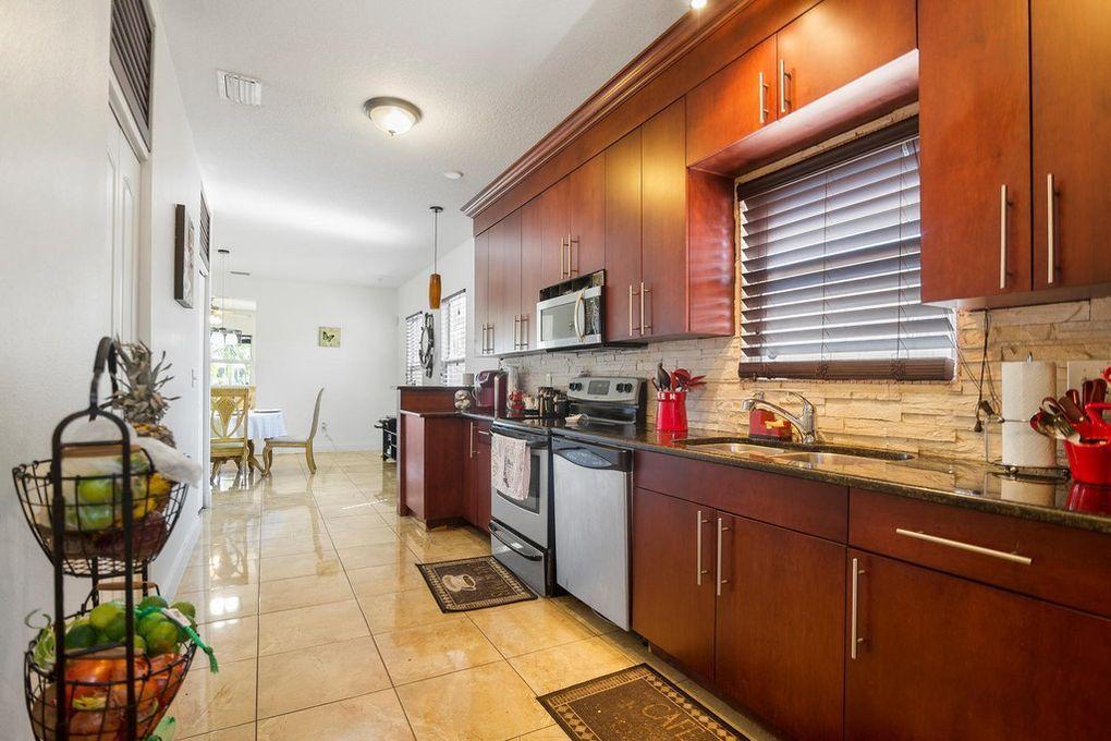 Enjoy a quiet community in West Palm Beach with no HOA. This lot provides plenty of room for a boat or a trailer. The inside is completely renovated with tile floors, a sparkling kitchen and all new appliances. The back yard has a covered patio, perfect for parties, and a great guest house for family or to AirBnb. Newer roof, newer water heater, newer AC Unit and all impact windows.