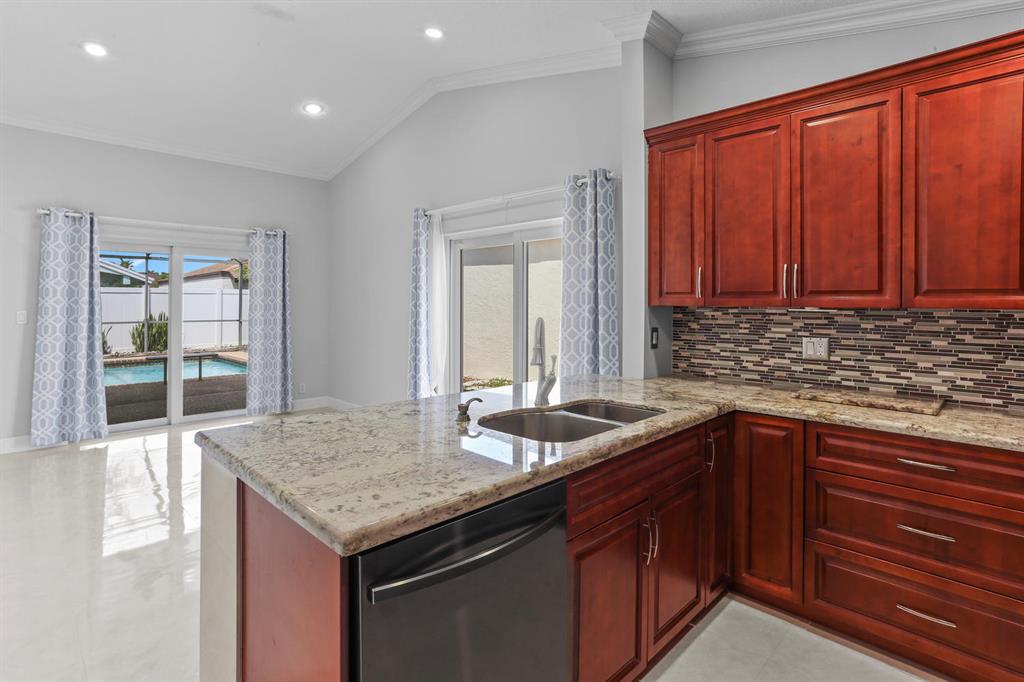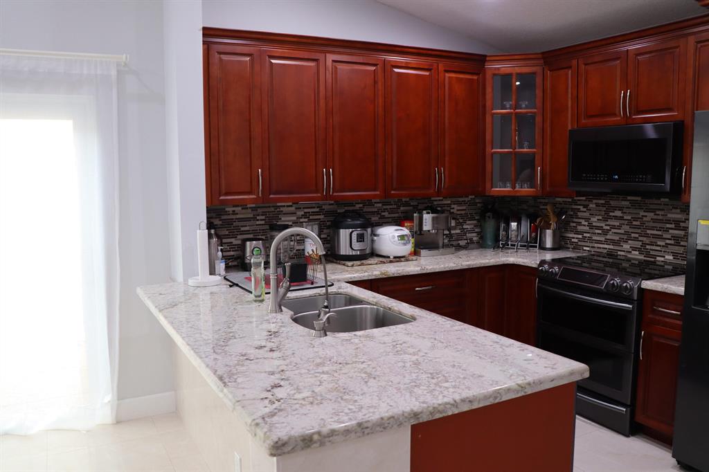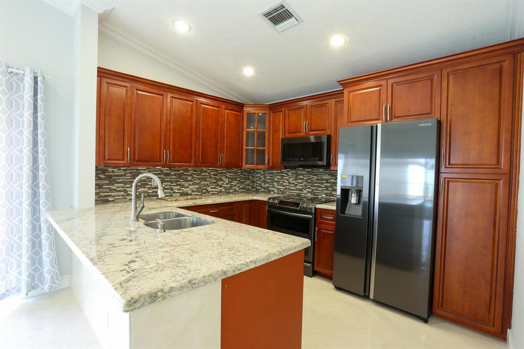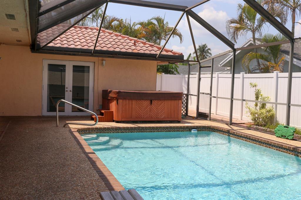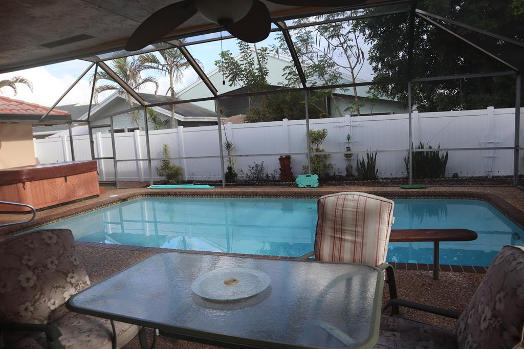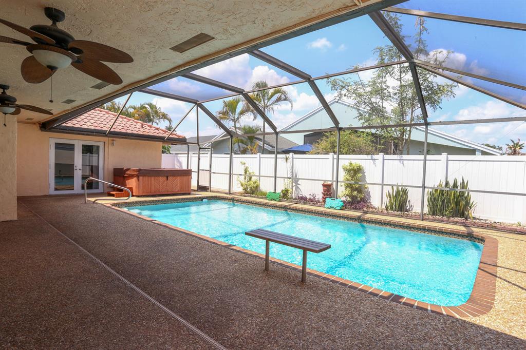 This is your clients chance to move into a turn key, move in ready property!Don't miss this 3 BR plus addt'l office/den, 2 car garage, pool home with Spanish tile roof! Striking, updated kitchen has beautiful cabinetry, granite, & glass/tile backsplash. Every appliance is Samsung, high end, & brand new. Life smart lights in kitchen, living room, dining room, & master. Master bedroom french doors lead to spacious & private patio/pool area. Master walk-in closet has custom built in shelves, drawers, & laundry basket. Both bathrooms were completely renovated w/ brand new showers & flooring, frameless shower doors, toilets, vanities. Master bath has private fenced lanai w/ pavers. New high end washer & dryer. Hurricane impact doors and windows, new crown molding.