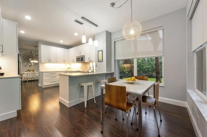 Full modern renovation of this 4 bedroom/3.5 bathroom home, perfect for a family. Master on the ground floor over looking the pool.The home is situated on an interior oversized lot with no traffic noise. Beautiful heated pool/ spa and patio with large grassy area perfect for children or pets. Modern white kitchen with stainless steel appliances and quartz countertops. All new modern baths. Accordion hurricane shutters throughout. 2 zone a/c 2016. HOA begins exterior painting in January with an all modern color scheme. Contracts received before 12/1 are afforded the opportunity to choose your new exterior color!a This is a must see home in Woodfield Country Club.