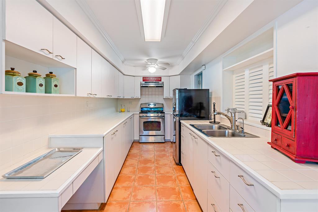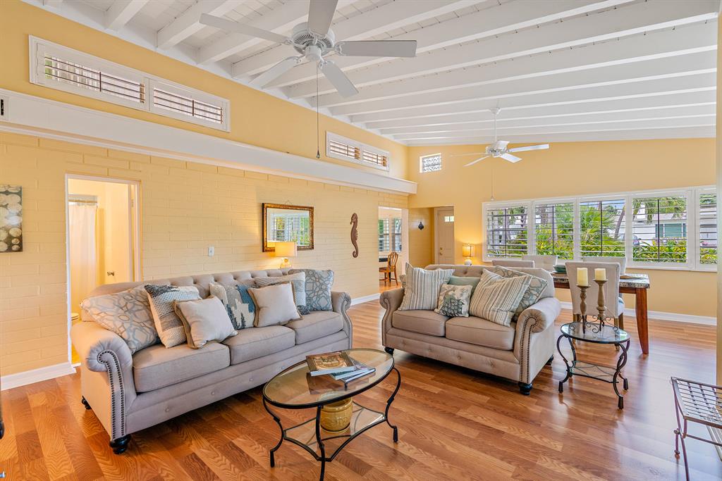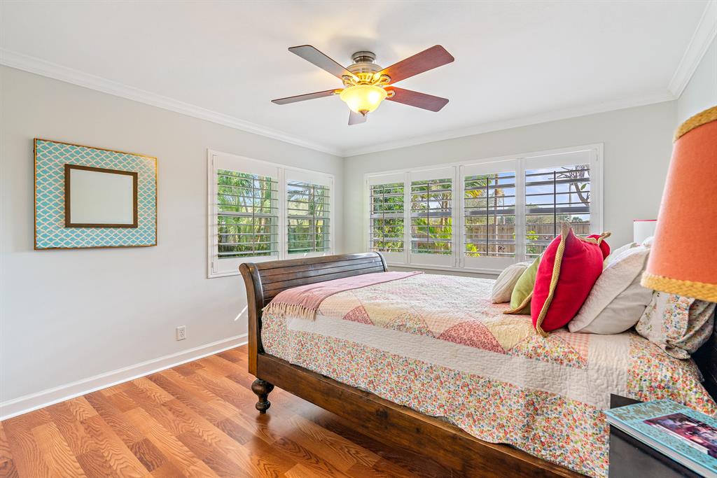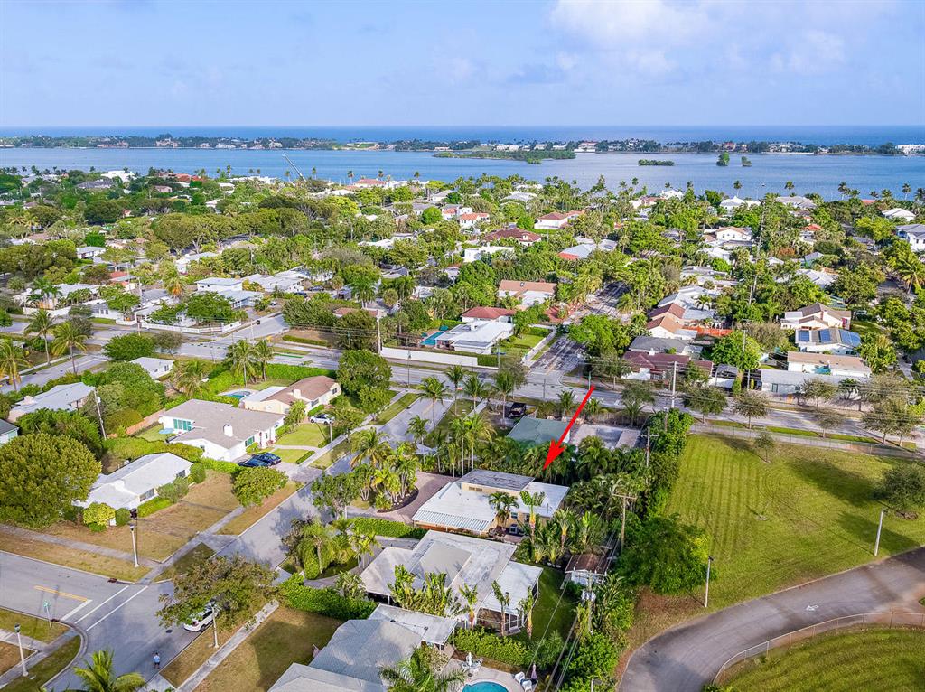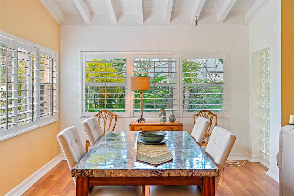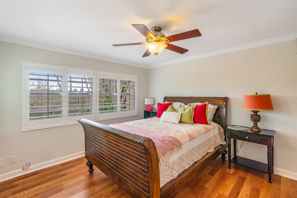 Absolutely charming, exceptionally well kept, mid-century home in the midst of the popular South of Southern neighborhood.Built on large lot with numerous trees and foliage, the home includes three bedrooms (or two bedrooms with den) and two baths--both finished in vintage art deco tile and detailing. The oversized family/living room is highlighted with a soaring vaulted ceiling with bead-board detailing. The home also features a larger catering-style, eat-in kitchen with nearby family room. A screened patio leads to a large deck and detached garage that could be finished and used as an art studio, ''man cave'' or simply for storage. The home includes a fenced in yard and carport. Only three blocks from the Intracoastal waterway.One of the best priced homes in the SoSo neig