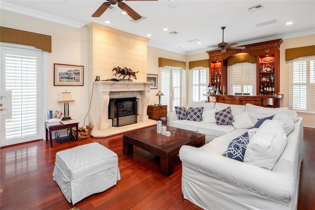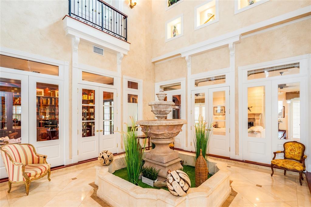 Stunning Sunshine Ranches gated compound on extensively landscaped corner acreage. Timeless Key West style w/metal roof & wrap around porches. Featuring a hotel style courtyard pool & fountain, summer kitchen, sport court & detached poolside guest house Casita. Stately living areas w rich details, built-ins, mahogany & marble floors. Elegant Chef's kitchen w center island, commercial grade stove & hood, chilled wine closet & morning dining room. Downstairs Master Suite and bath + guest suite off kitchen. Upstairs game room, 3 bedrooms each w full baths. Family room w fireplace & horseshoe bar overlooks the pool courtyard. Interior fountain gathering area off kitchen & family room offers a unique setting w adjacent library/den. Winding live oak drive w 2 entry points & detached garage.